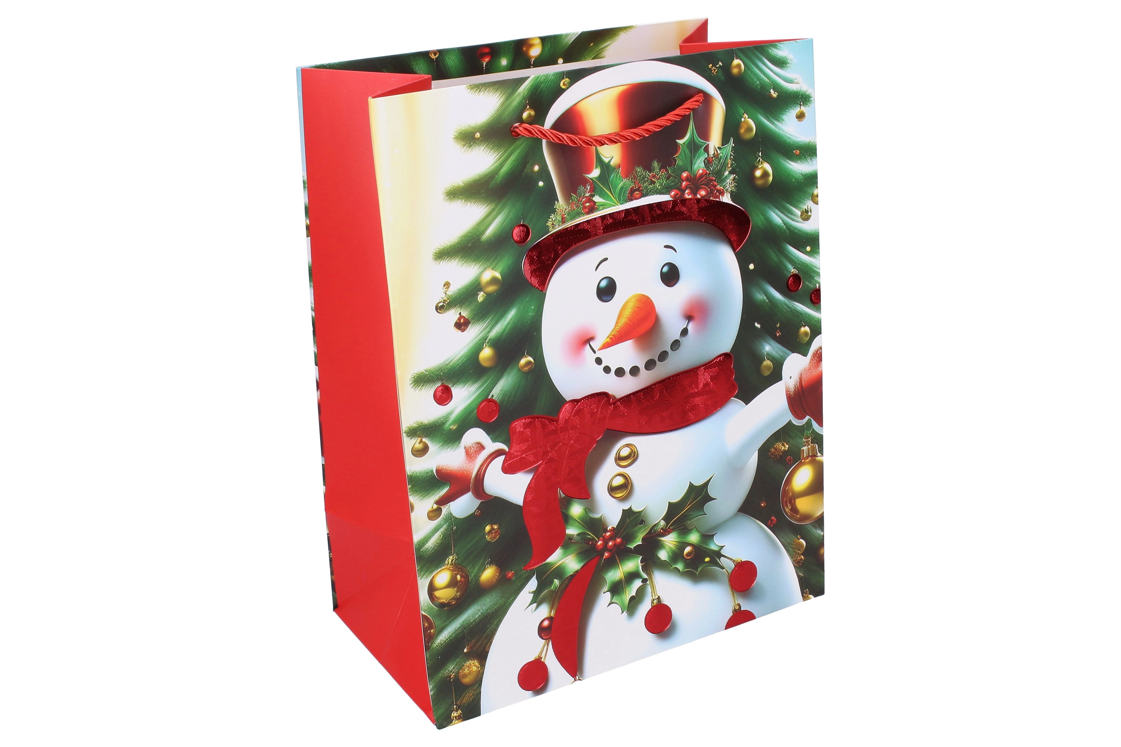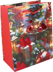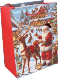 Stilingas dovanų maišelis S dydžio, 18 × 23 × 10 cm, idealiai tinka mažesnėms dovanoms pakuoti. Kalėdiniai motyvai suteikia jūsų dovanai šventišką atmosferą ir sutaupo laiką pakuojant. Galimos 4 motyvų versijos kiekvienai Kalėdų progai.