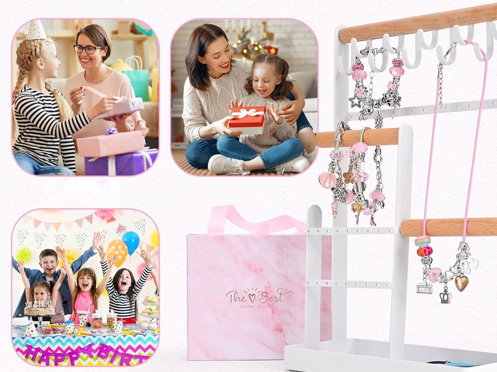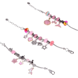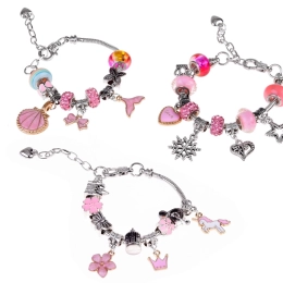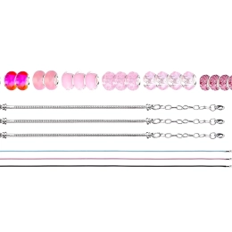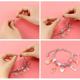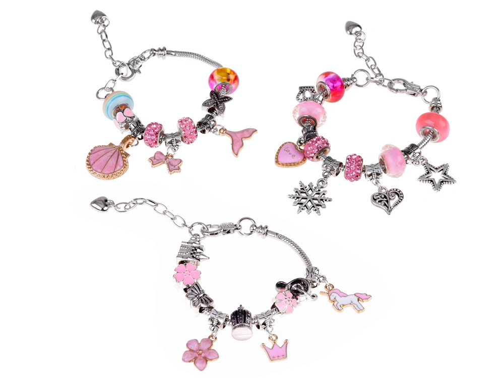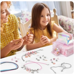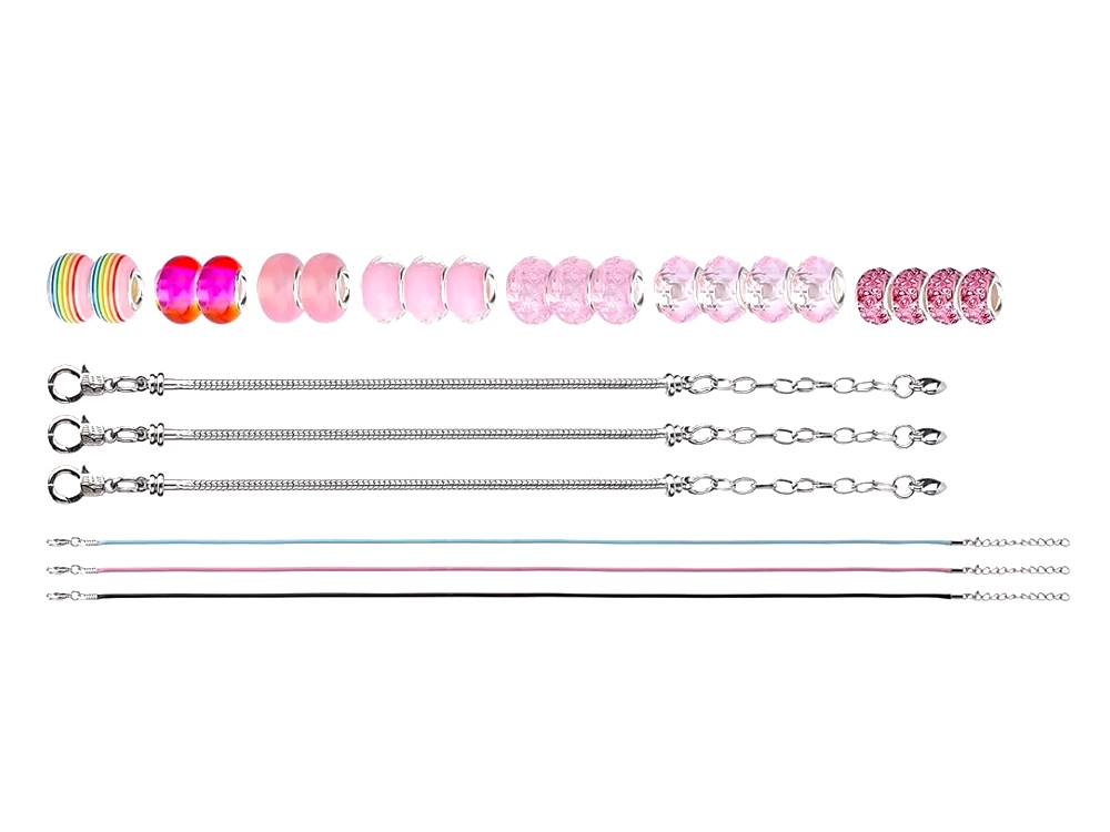 Sukurkite unikalias apyrankes pagal savo stilių. Šis rinkinys sidabrinės spalvos su rožiniais ir auksiniais akcentais siūlo platų karoliukų ir pakabukų pasirinkimą, todėl kiekvienas papuošalas bus originalus. Kūryba kartu lavina smulkiąją motoriką, kantrybę ir kūrybiškumą – prasmingas užsiėmimas.
