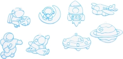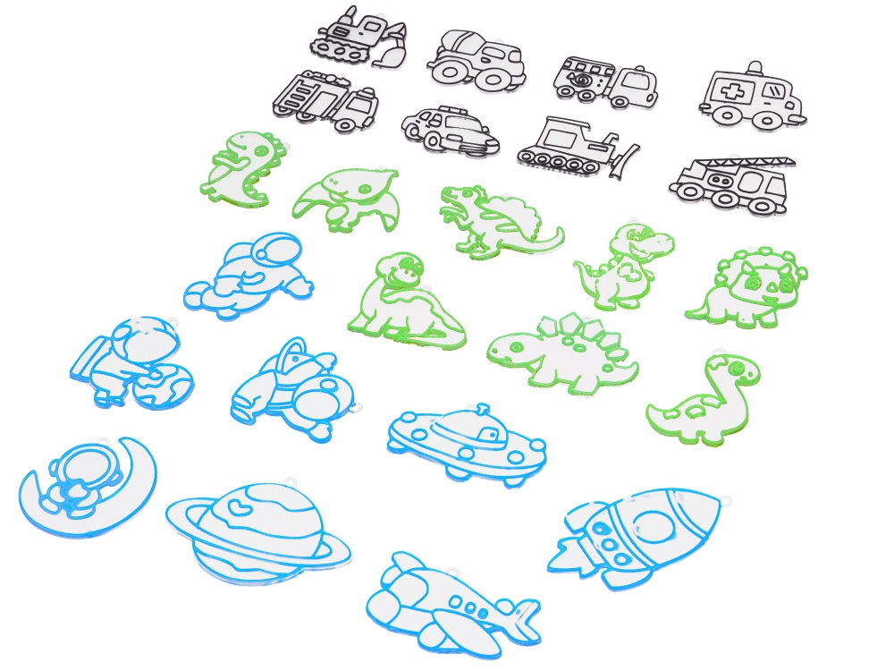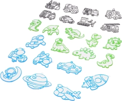 Rinkinyje rasite populiarius motyvus iš kosmoso, preistorės ir automobilių kategorijų, kurie patiks ir berniukams, ir mergaitėms. Kūrimas lavina smulkiąją motoriką, kantrybę ir kūrybiškumą, o vaikai pasidžiaugs savo originaliais darbais, kuriais galės pagrįstai didžiuotis.