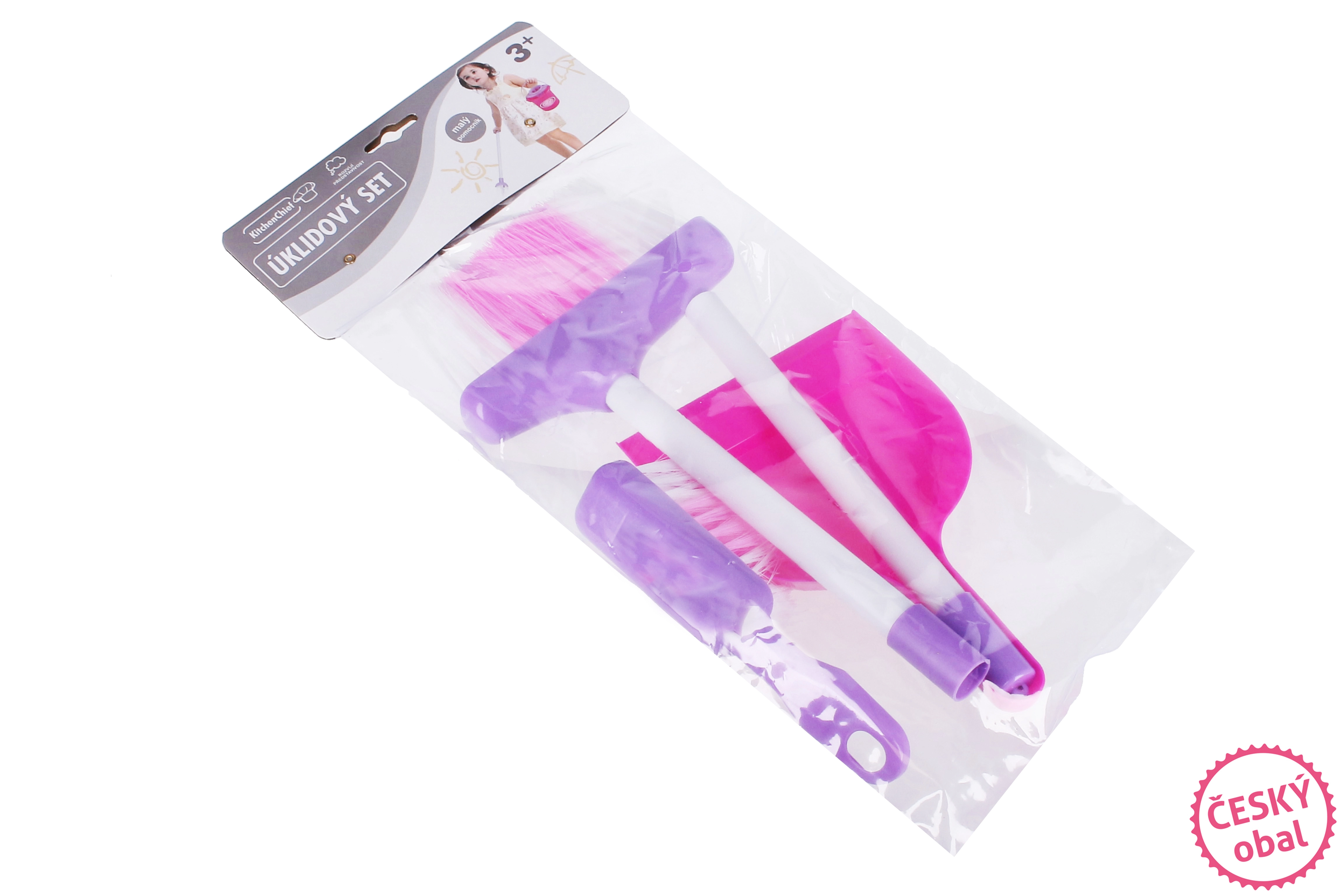Praktiškas vaikiškas valymo rinkinys susideda iš 3 dalių – semtuvėlio, šepetėlio ir sulankstomo šluotos kotelio su šluota. Pagaminta iš patvaraus plastiko rožinės ir baltos spalvos, idealiai tinka namų žaidimams ir smulkiosios motorikos lavinimui. Sulankstoma šluota lengvai telpa į mažesnę žaislų dėžę.