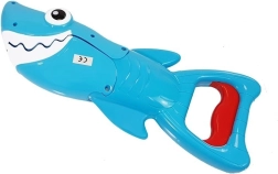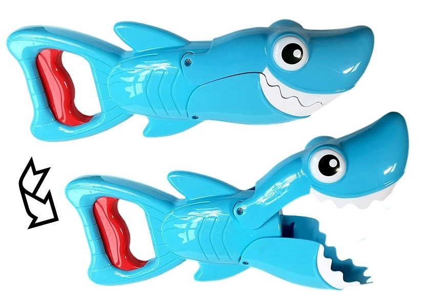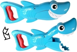 Ryklys su interaktyviu žiočių mechanizmu lengvam sugriebimui ir „žuvyčių medžioklei“. Mėlynas dizainas su akių ir dantų detalėmis skatina žaismą.