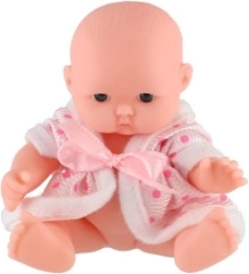 Maža, bet kruopščiai atlikta lėlytė – ideali pirmiesiems žaidimams „mamą ar tėtį“. Dėl tvirto plastikinio kūnelio ji patvari ir lengvai prižiūrima, o tekstilinė apranga suteikia žavesio ir skatina rengti.