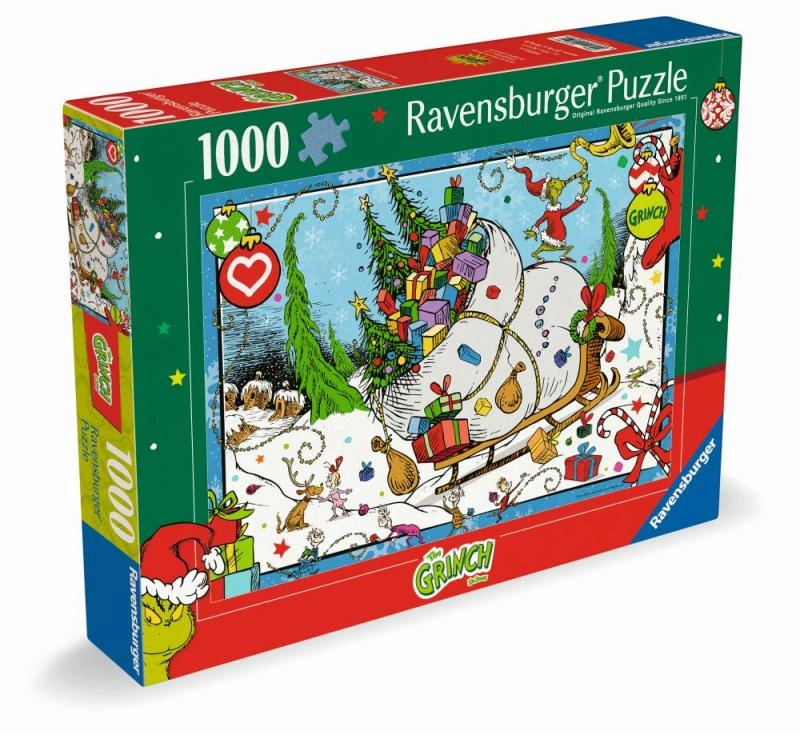 Leiskitės į nuotykį su linksma Grinčo tema, kuri jus įtrauks į kalėdinę atmosferą. Žinomo prekės ženklo Ravensburger dėlionė siūlo:
