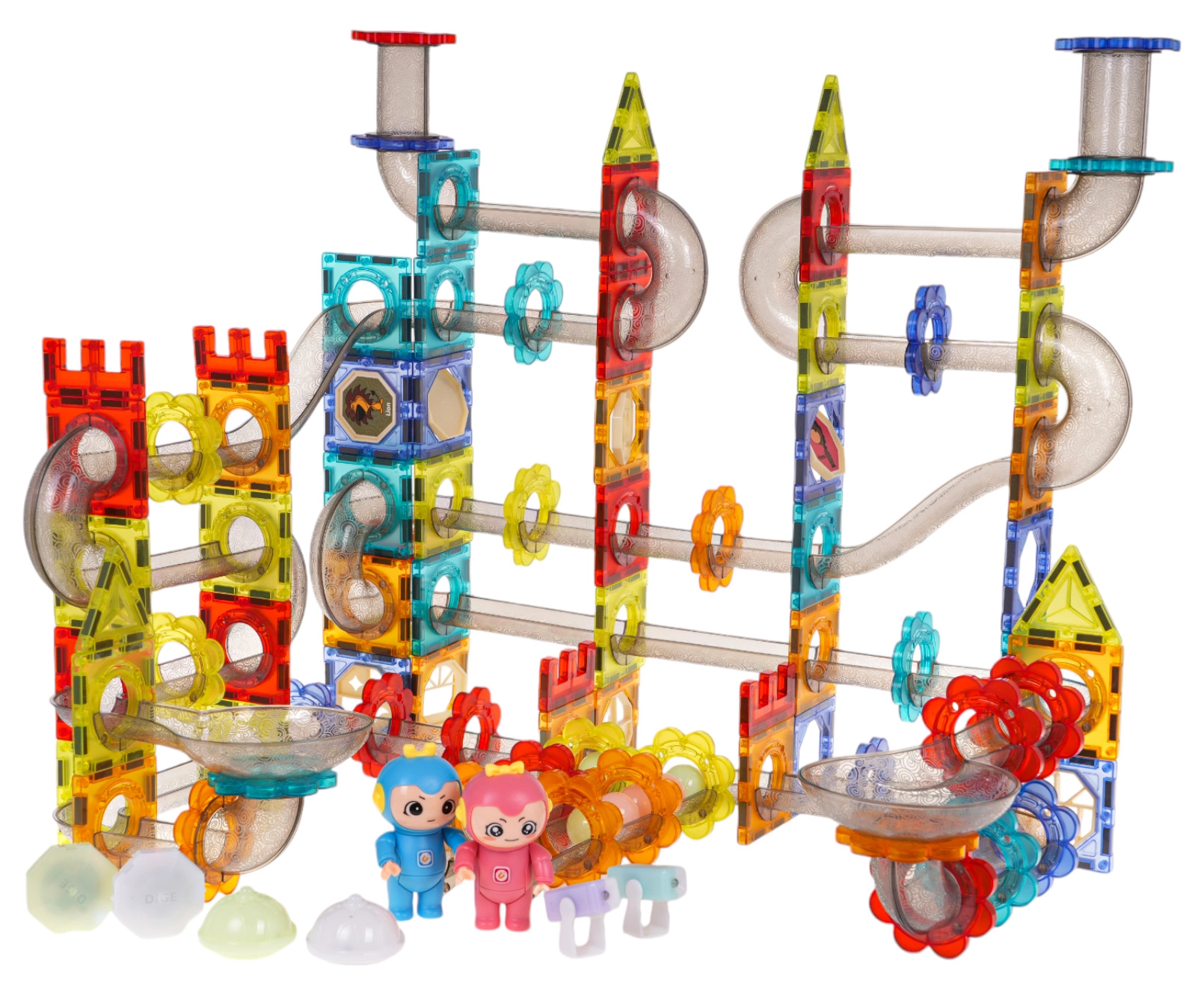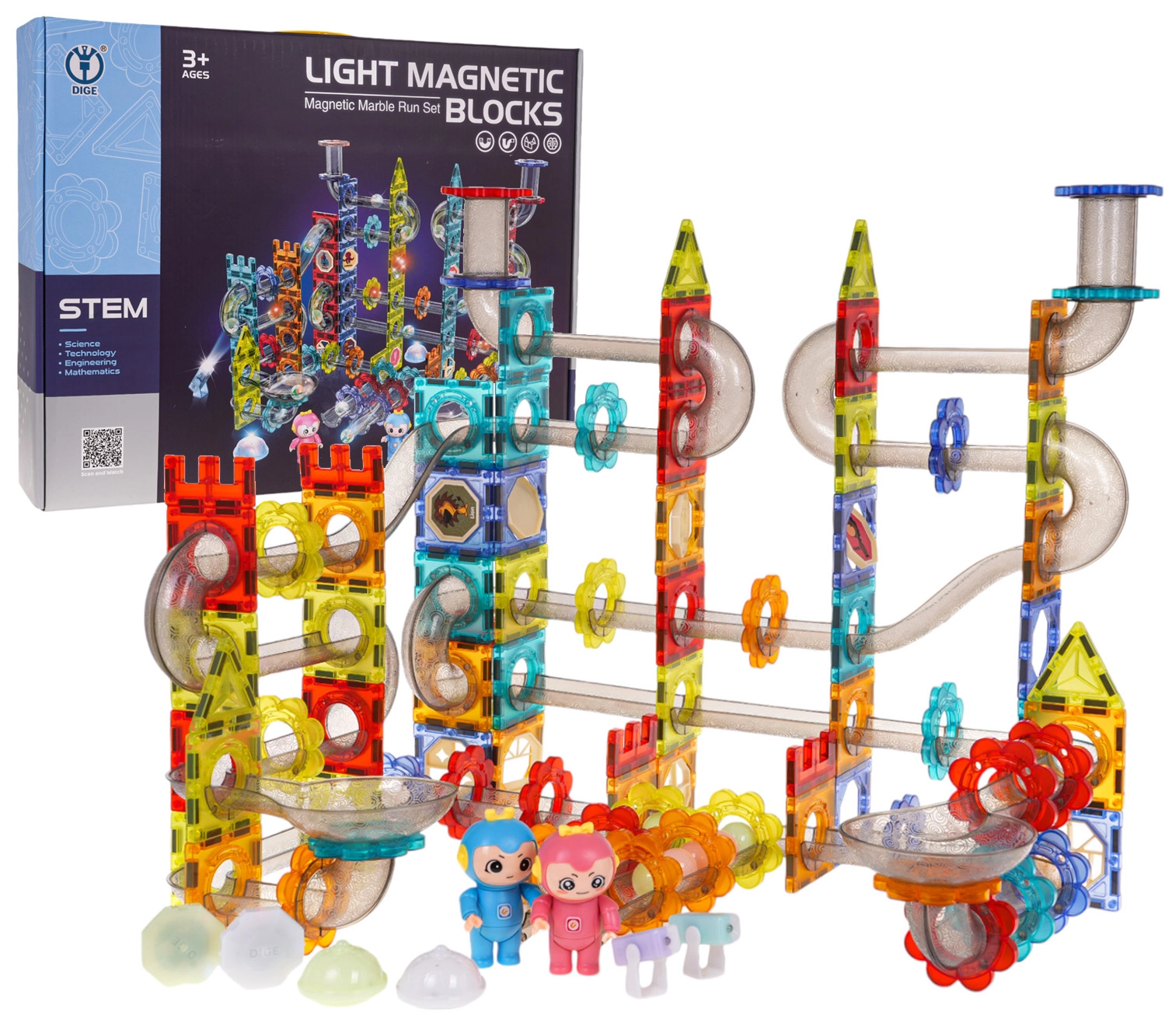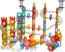 Statykite vaikams nesibaigiančius rutuliukų kelius su šiuo magnetiniu konstruktoriu, kurį sudaro 228 dalys. Permatomi elementai, vamzdeliai ir plokštės jungiasi stipriais magnetais, todėl konstrukcijos išlieka stabilios. Pramogą užtikrina mirksintys rutuliukai, LED prožektoriai ir šviečiančios kapsulės su 3 mirksėjimo režimais. Visos reikalingos baterijos yra pakuotėje.