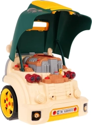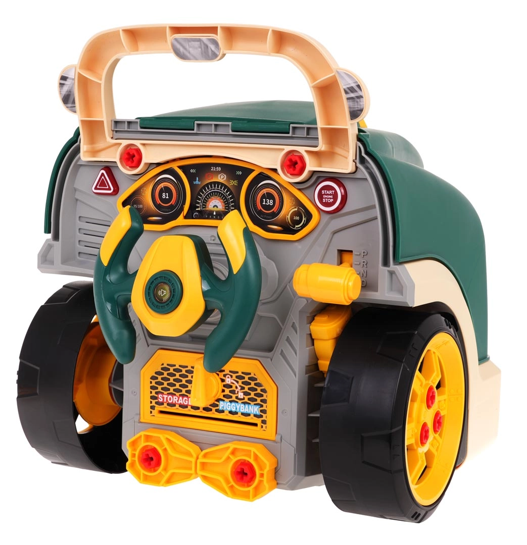 Rinkinyje yra įrankiai ir daugybė varžtų, todėl vaikai gali vėl ir vėl surinkinėti bei ardyti variklį ir ratus. Žaidimas skatina rankinius įgūdžius, kūrybiškumą ir techninį mąstymą. Maitinimas 3× AA 1,5 V (rinkinyje nėra).