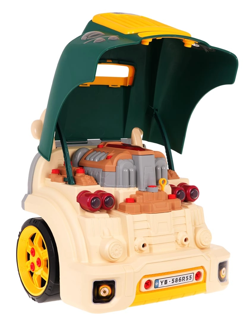 Interaktyvus mažiesiems mechanikams skirtas rinkinys, suformuotas kaip sunkvežimio priekinė dalis, siūlo realistišką žaidimą su šviesomis, garsais ir išardomu varikliu. Vaikai lavins smulkiąją motoriką, akių–rankų koordinaciją ir mokysis „remonto“ pagrindų naudodami varžtus, įrankius ir funkcinį prietaisų skydelį su signalu ir variklio užvedimu.