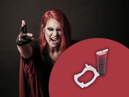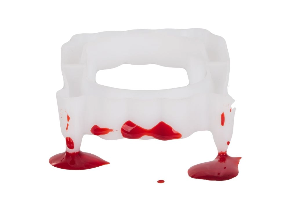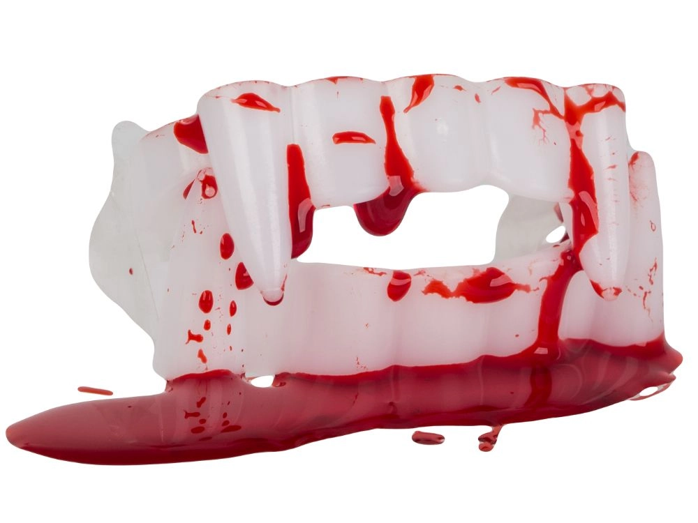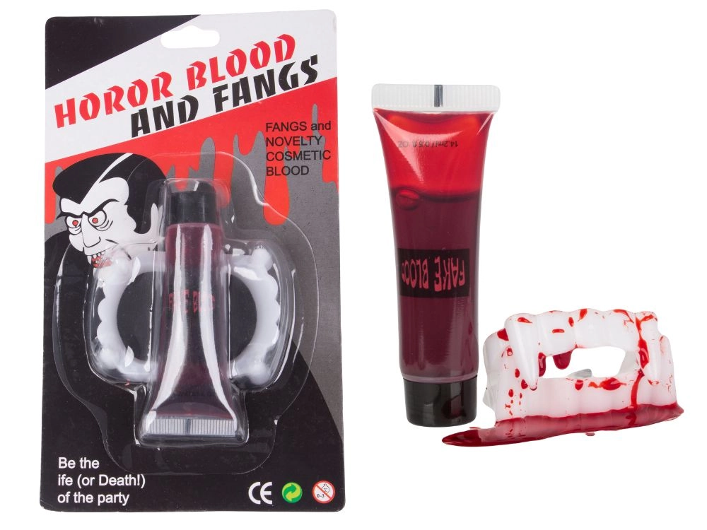 Per kelias sekundes tapkite tikru vampyru. Balti plastikiniai iltiniai su raudonais akcentais imituoja šviežią kraują, o kartu su tūbele netikro kraujo sukuria autentišką siaubo efektą grimo ir kostiumų naudojimui. Tinka Helovinui, kaukių baliams, teminiams vakarėliams bei kino ar foto projektams.