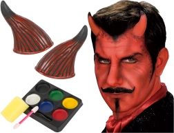 Rinkinys idealiai tinka Helovynui, karnavalams ar teminiams vakarėliams. Su juo galite sukurti ir bauginančią, ir įspūdingą išvaizdą, traukiančią dėmesį. Be ragų ir dažų, yra ir dirbtinio kraujo, kad užbaigtumėte velnišką įvaizdį.