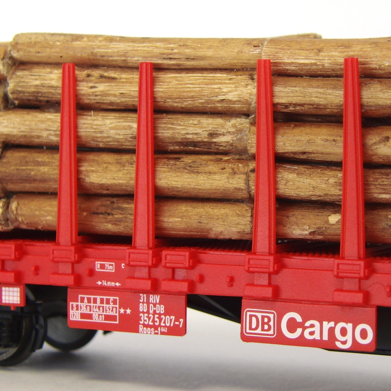 Kontrastinė dažyba, smulkūs įrašai ir detalūs elementai, tokie kaip turėklai ir laipteliai, užtikrina maksimaliai autentišką DB Cargo vagono išvaizdą.