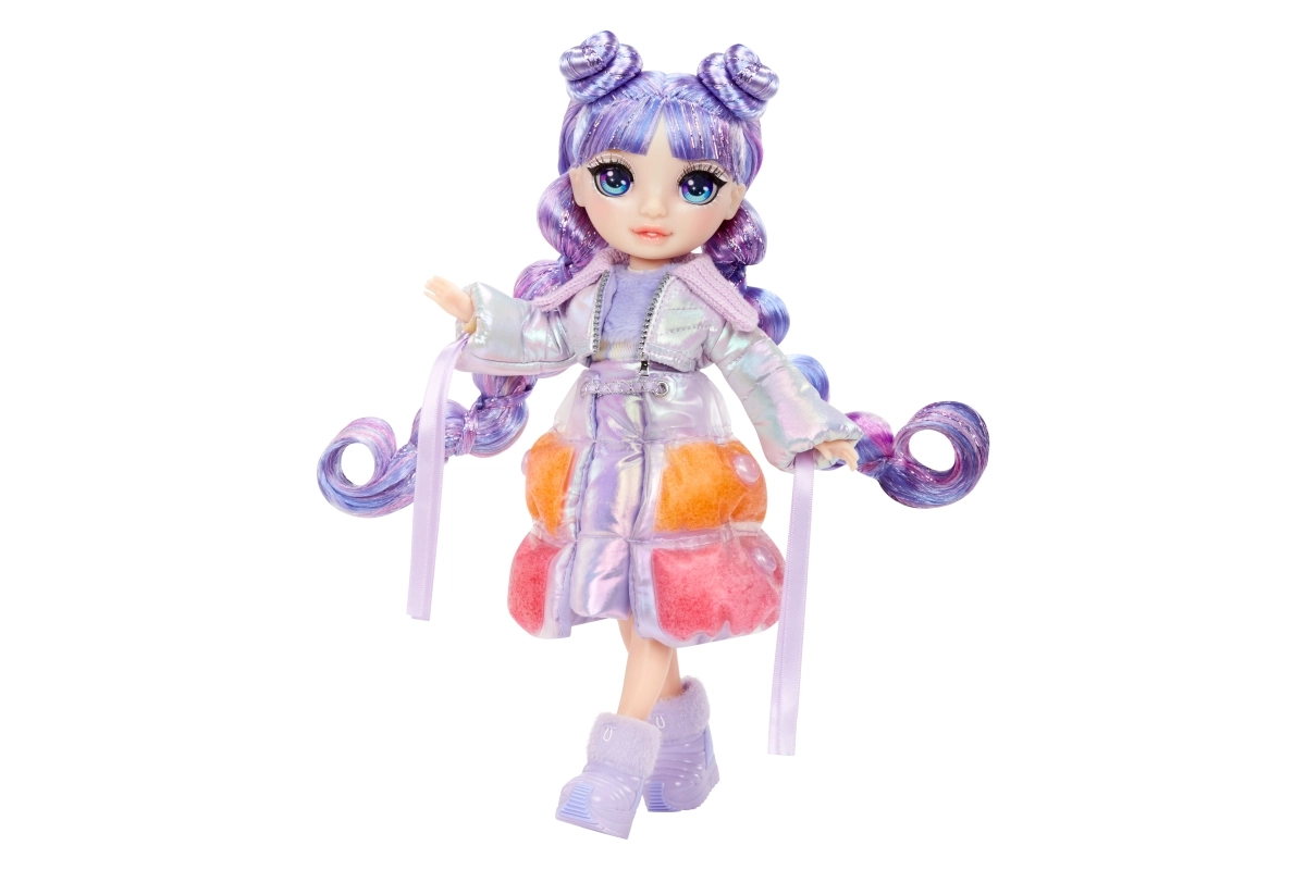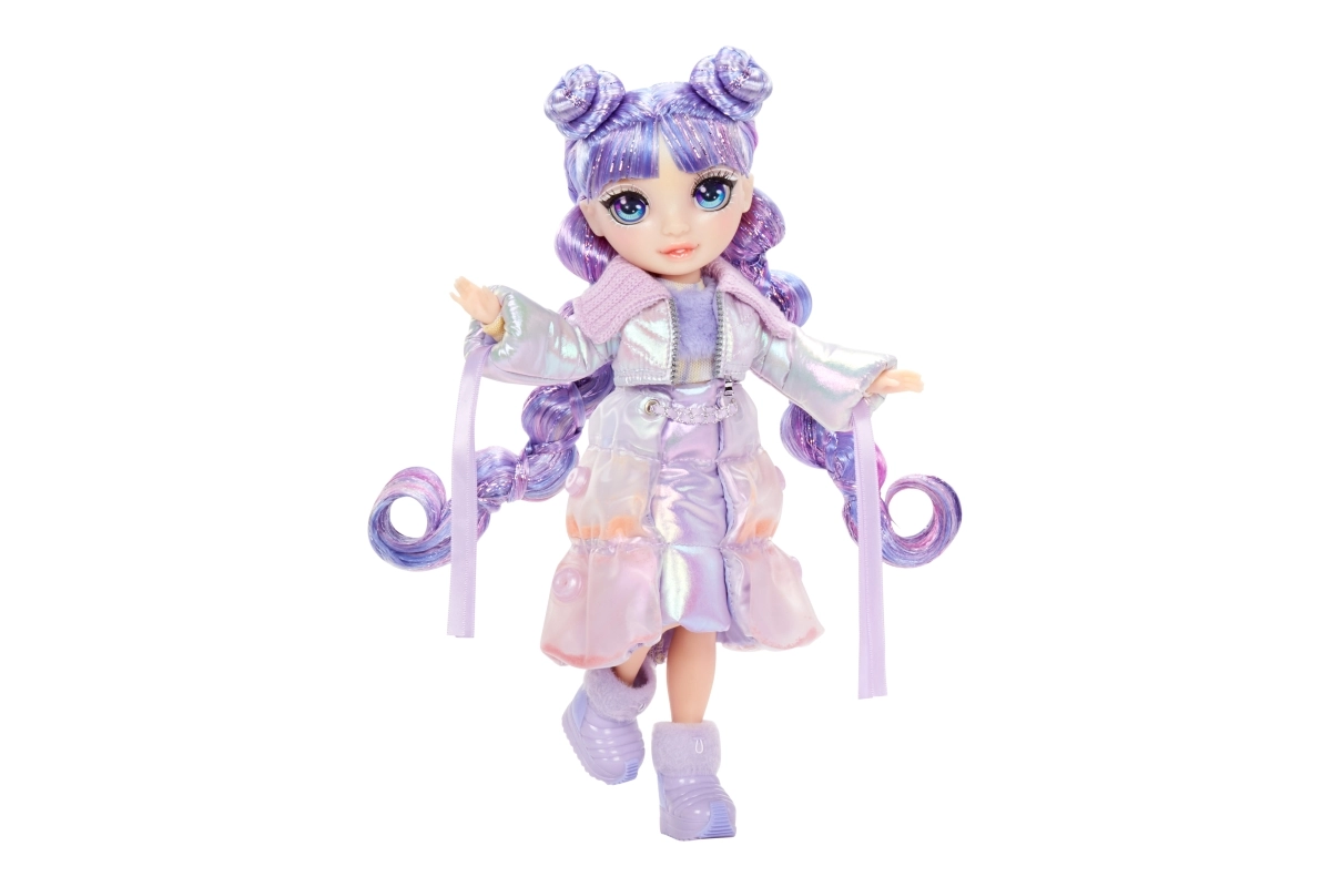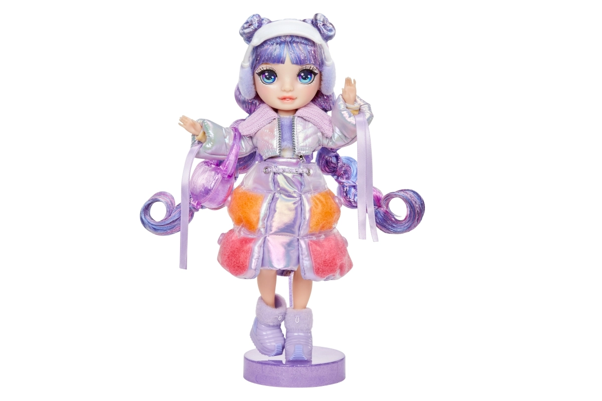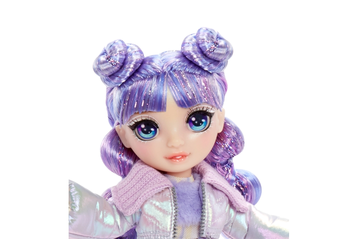 Linksmas žiemos leidimas RAINBOW HIGH pristato violetinę gražuolę Violet Willow, kuri dėl stebuklingo sniego patiria akimirksninę aprangos transformaciją. Pakuotėje rasi daug priedų, stovą ir šepetį, taip pat rinkinį sniego senio kūrimui. Visiškai judri 28 cm lėlė begaliniams mados ir žiemos žaidimams.