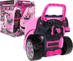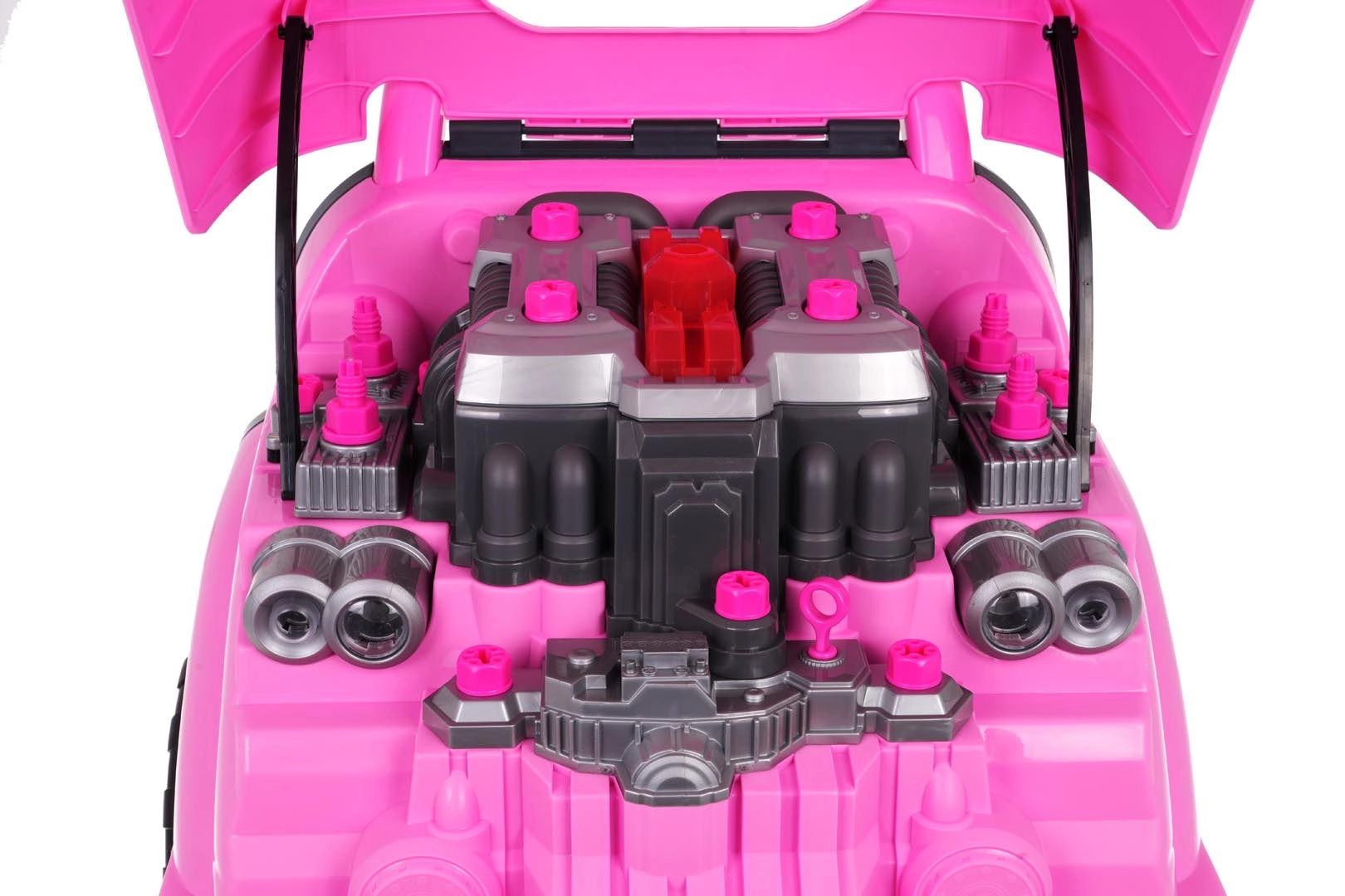 Interaktyvi priekinė transporto priemonės dalis su prietaisų skydeliu ir automatine „pavarų“ svirtimi suteikia vaikams realistišką vairavimo ir serviso patirtį. Paspaudus startą pasigirsta užvedimo garsas, o važiuojant pirmyn ar atbulomis įsijungia atitinkami efektai. Po kapotu slepiasi didelis išardomas variklis, kuriame mažieji mechanikai gali keisti „žvakes“, ratus ir kitas detales.