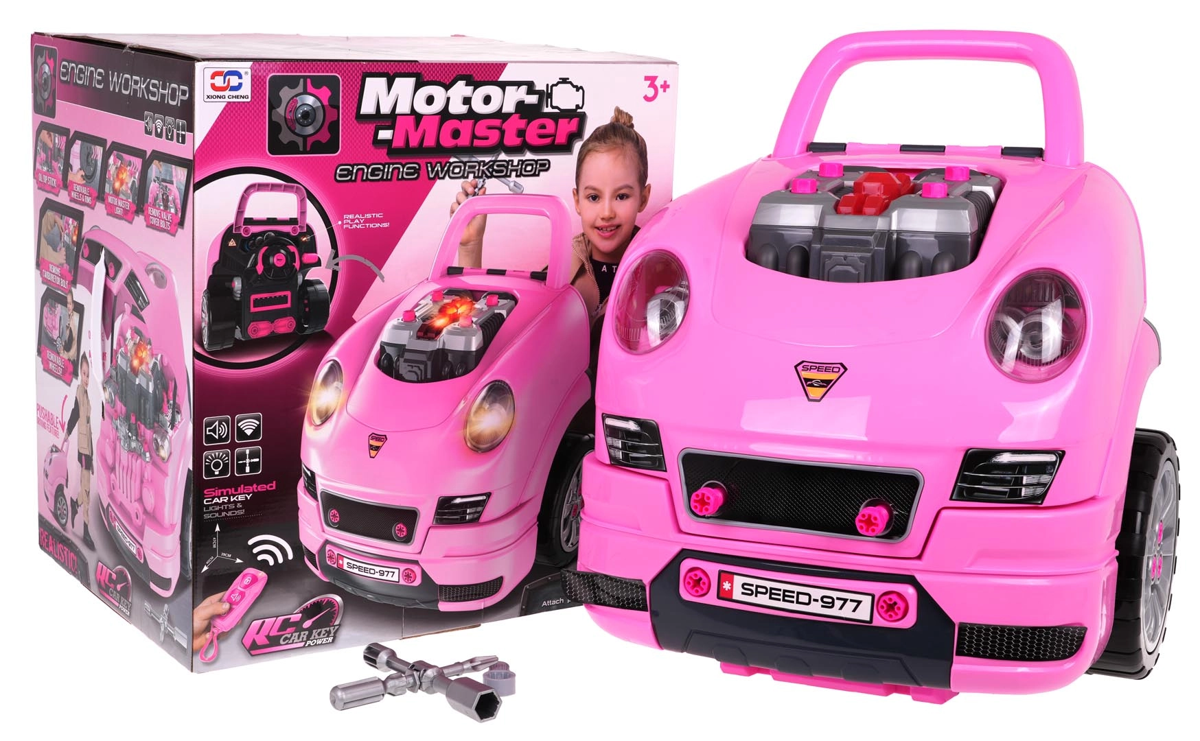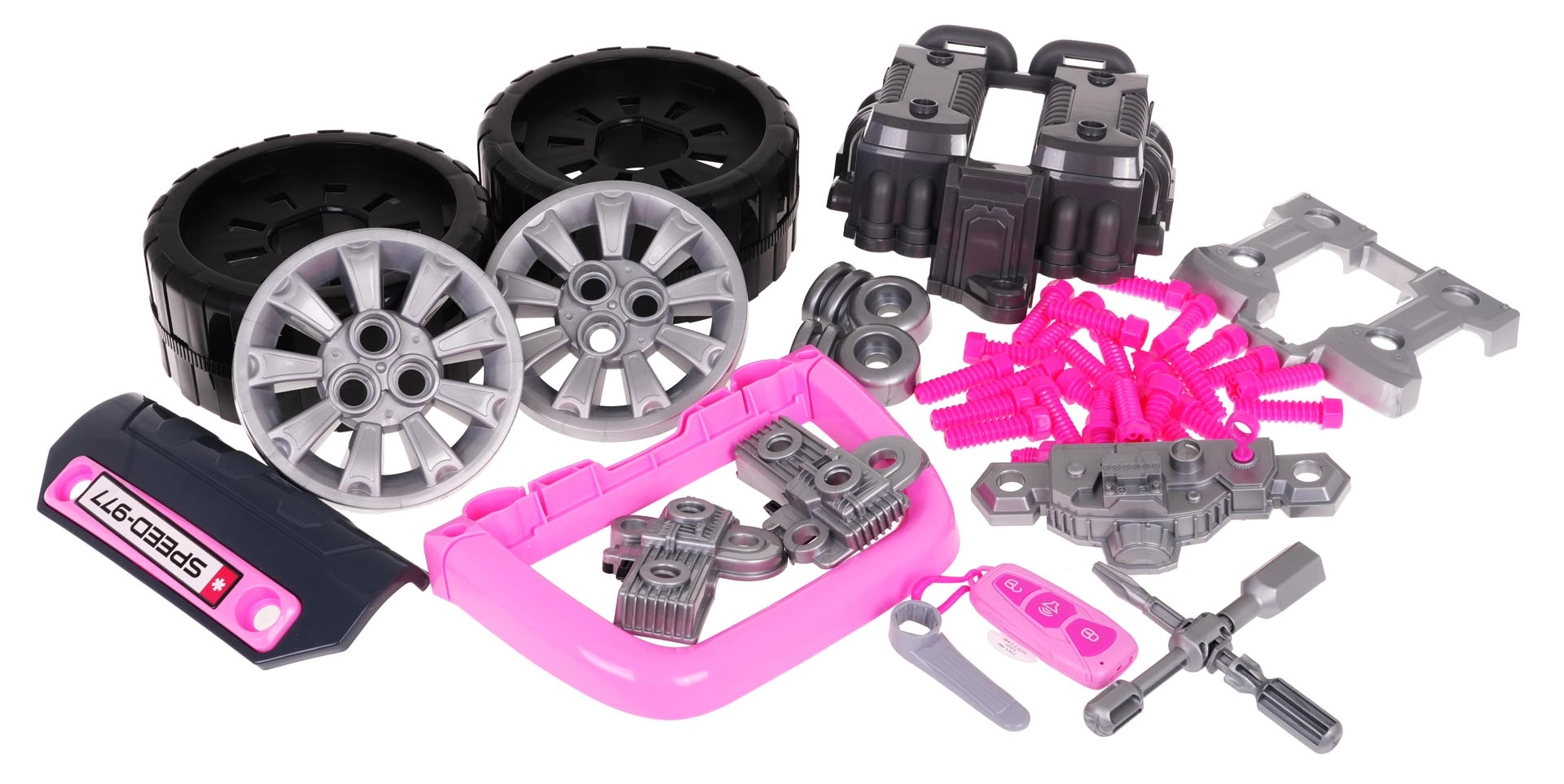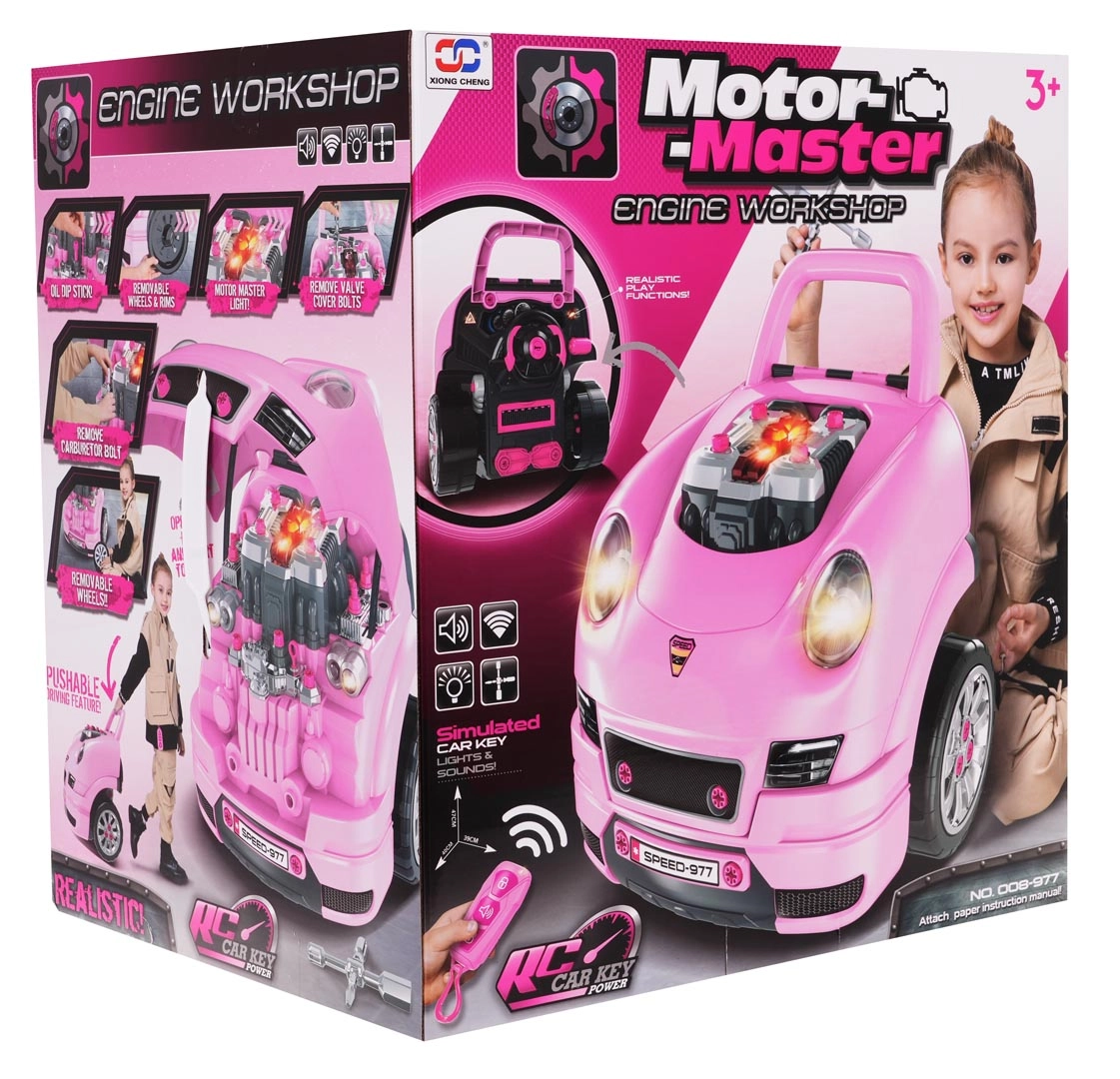 Nuotolinio valdymo pultas raktelių formos įjungia šviečiančius priekinius žibintus ir variklio apšvietimą, taip pat skleisdžia užrakinimo/atrakinimo garsus bei garso signalą. Patogi rankena palengvina nešiojimą, o dėžutė po vairu sutalpina visus varžtelius, įrankius ir priedus. Rinkinys lavina įgūdžius, vaizduotę ir žaismingai moko mechanikos pagrindų.