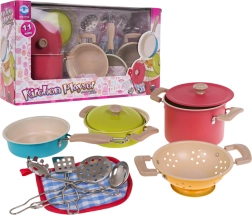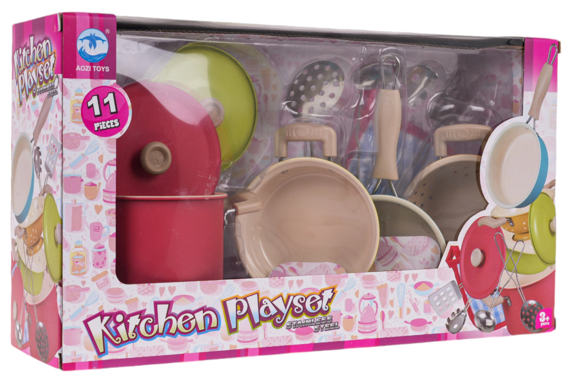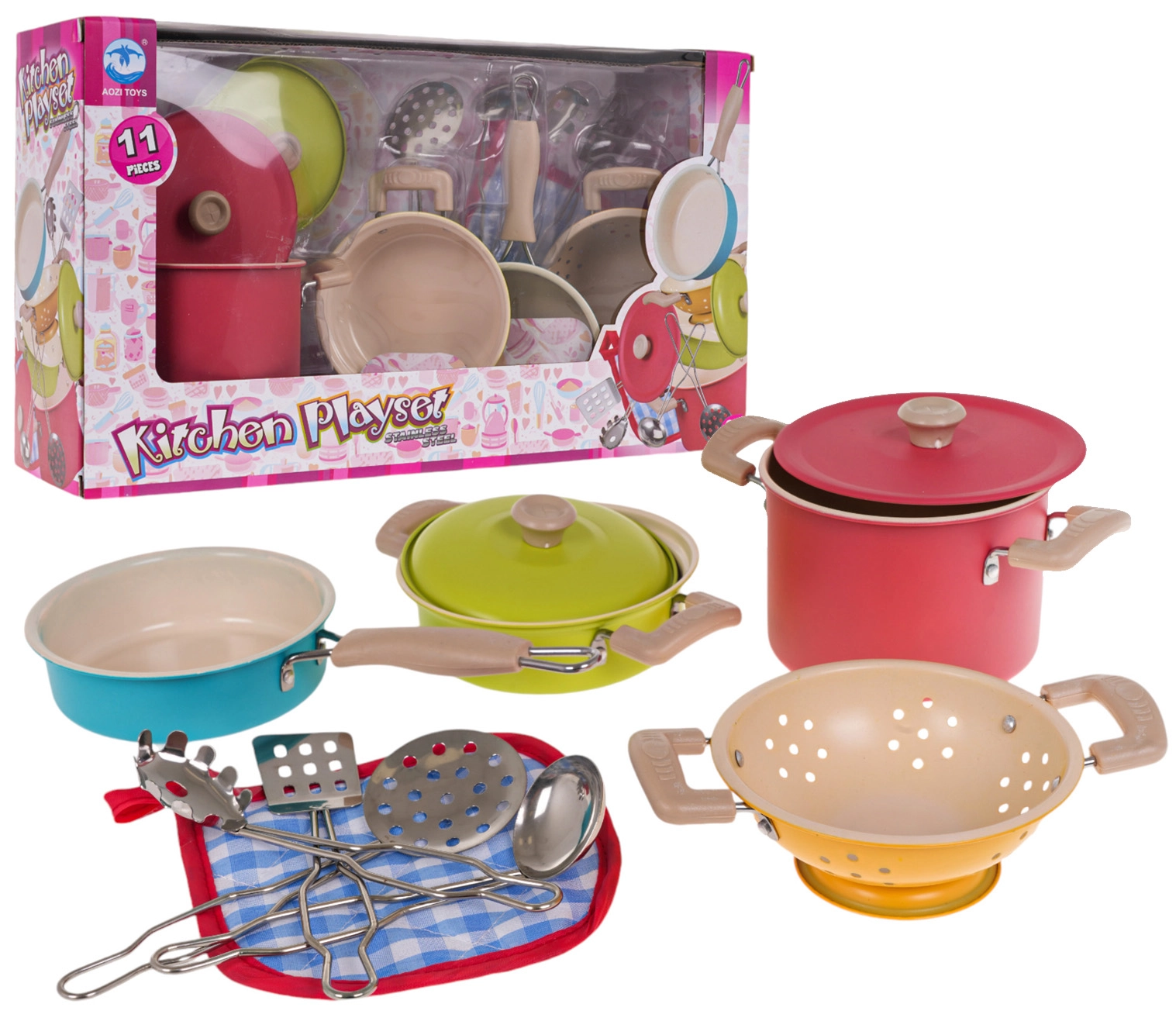 Lavinkite vaikų fantaziją su 11 dalių metalinių indų ir įrankių rinkiniu mažiesiems virėjams nuo 3 metų. Rinkinyje yra puodai su dangteliais, keptuvė, sietuvas ir įrankiai – išsiskiria ryškiomis spalvomis, patvaria metaline konstrukcija ir gausia komplektacija tikroviškam vaidmeniniam gaminimui.