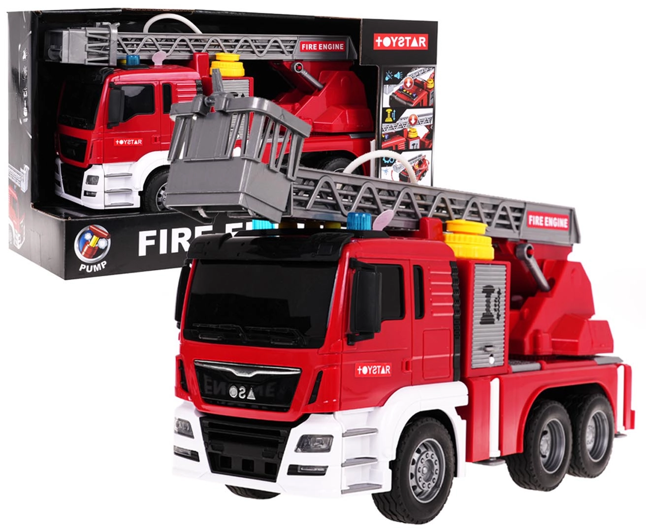 Gaisrinės automobilis su vandens funkcija – puikus žaislas vaikams, mėgstantiems veiksmą ir gelbėjimo misijas. Dėl vandens bakelio ir veikiančios purškimo žarnos mažieji gaisrininkai gali „gesinti“ gaisrus kaip tikrovėje. Autentišką įspūdį kuria švyturėliai ir realūs sirenos, užvedimo bei variklio garsai.