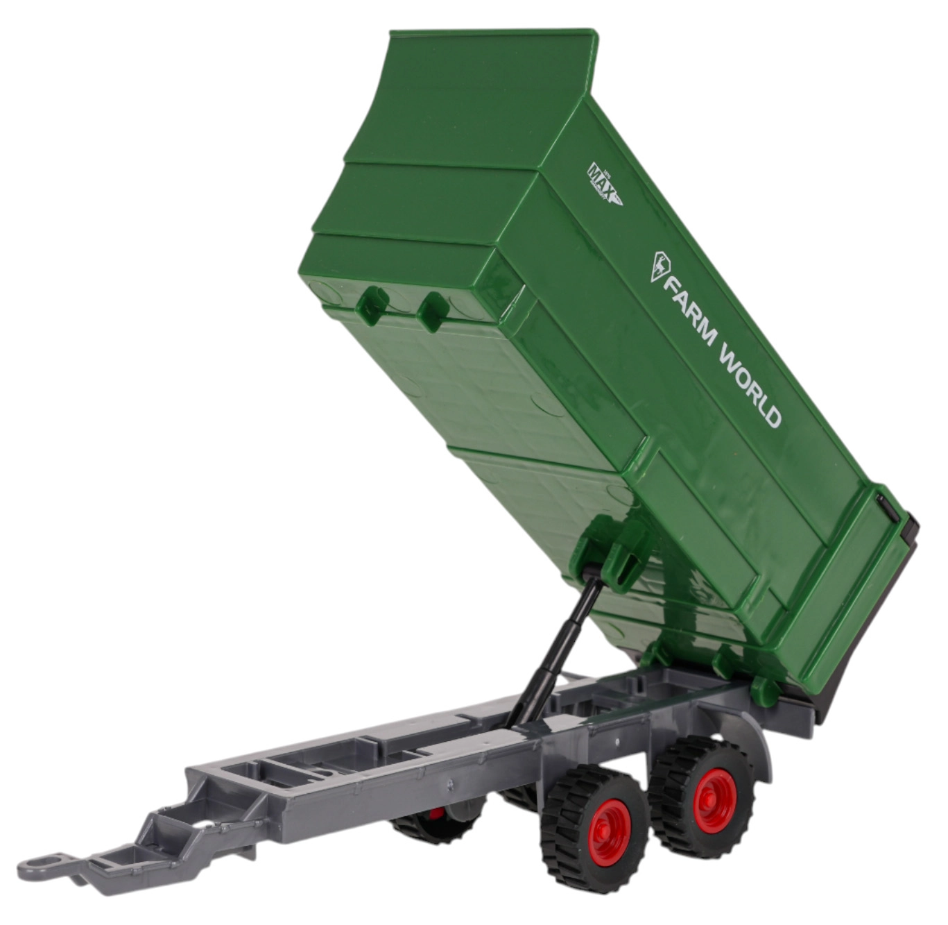 Traktorius komplektuojamas su nuimama priekaba, kurią galima rankiniu būdu pakelti ir nuleisti – tai garantuoja puikų žaidimo smagumą.