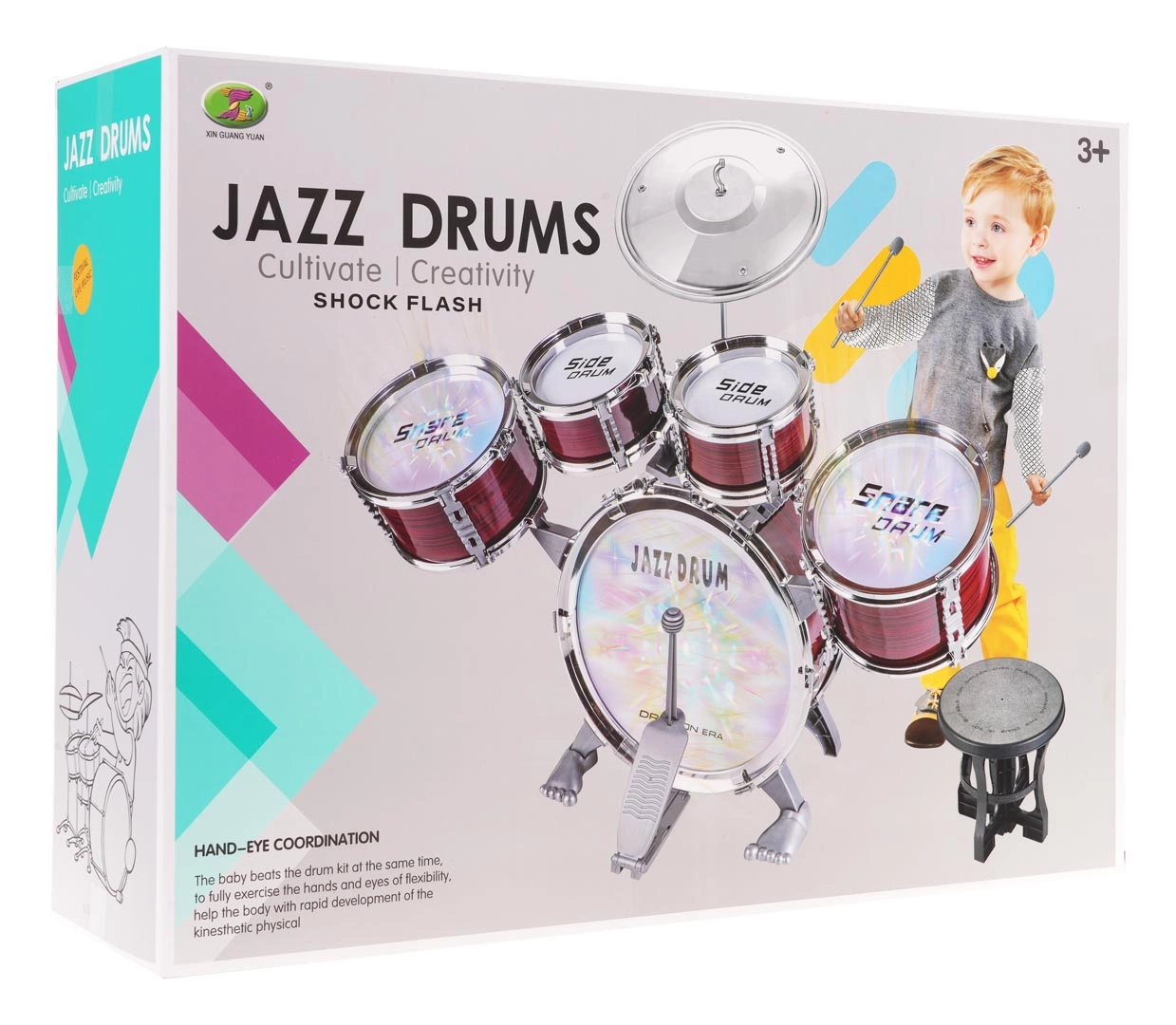 Mėgaukitės puikiu žaidimu su šiuo didelės vaikų būgnų rinkiniu su apšvietimu, sukurtu vaikams nuo 3 metų. Rinkinyje yra penki būgnai ir viena lėkštė, todėl tai puikus žaislas mažiesiems muzikos entuziastams, norintiems išmokti skirti garsus ir lavinti klausą.