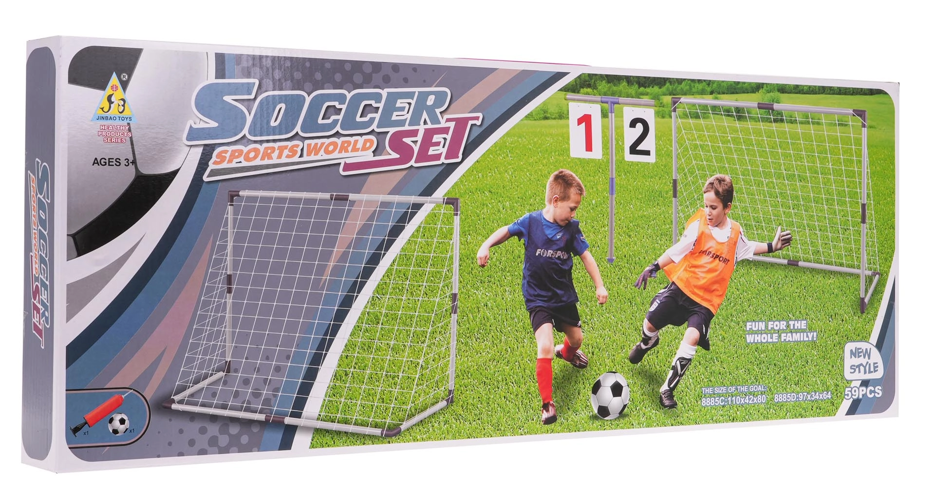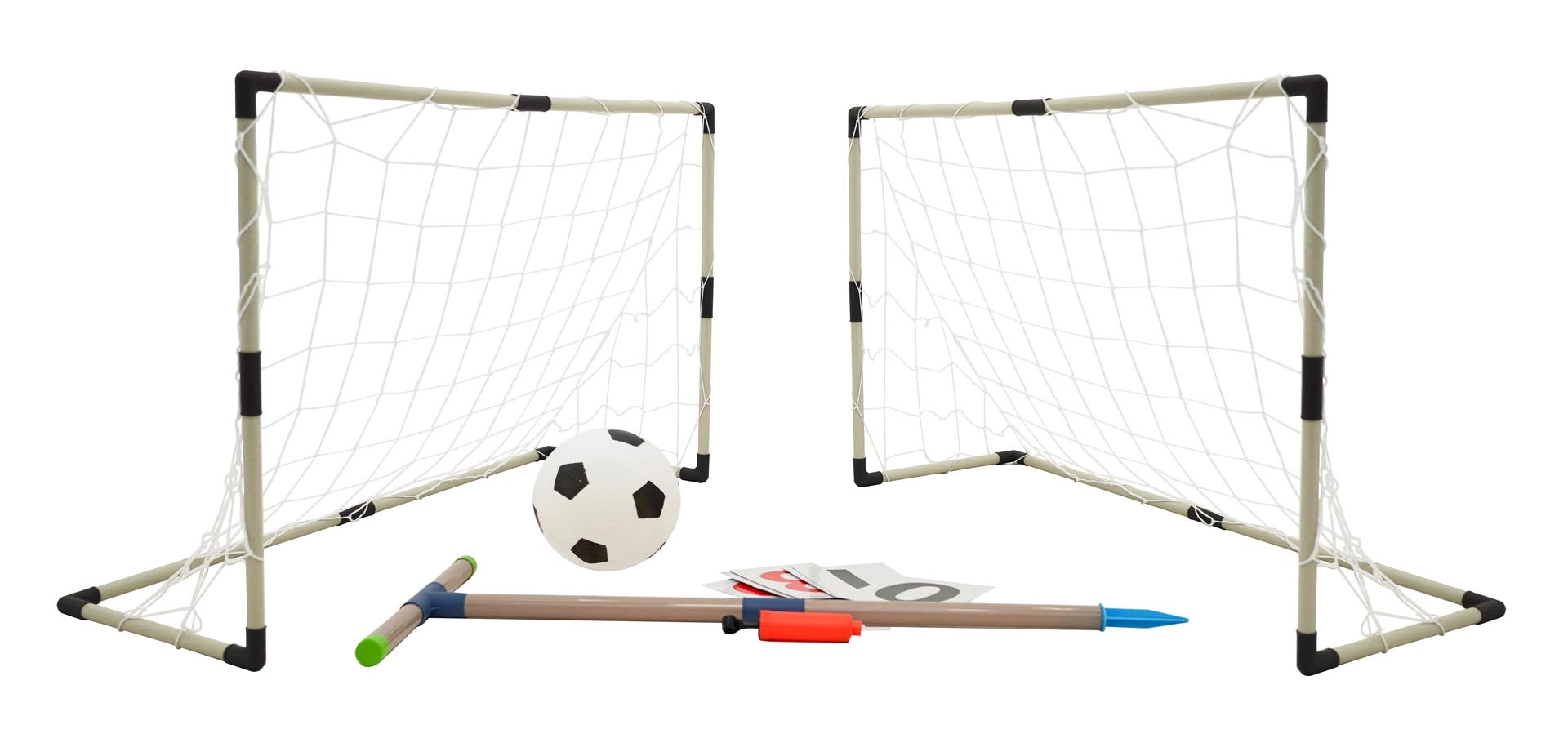 Du vartai, rezultatų lentelė, kamuolys ir pompa – viskas, ko reikia, kad iškart galėtumėte žaisti sode ar aikštelėje. Skatina judėjimą, koordinaciją ir sąžiningą žaidimą.