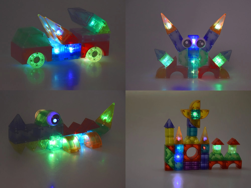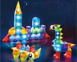 Šis spalvingas magnetinių kaladėlių rinkinys leidžia vaikams statyti automobilius, bokštus, gyvūnus ir fantazines konstrukcijas. Dalys iš patvaraus, saugaus plastiko tvirtai laikosi dėl įmontuotų magnetų, o šviesos moduliai suteikia kiekvienam kūriniui įspūdingą išvaizdą. Pridėti nurodymai su įvairiais sudėtingumo lygiais, todėl vaikai pamažu tobulina įgūdžius.
