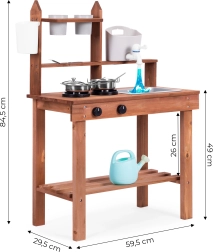 Skatina vaidmenų žaidimus ir leidžia vaikams „gaminti“ iš smėlio, molio ar akmenukų. Patogios lentynos ir kabliukai palaiko tvarką, o kompaktiški matmenys leidžia lengvai pastatyti net mažesnėse erdvėse.
