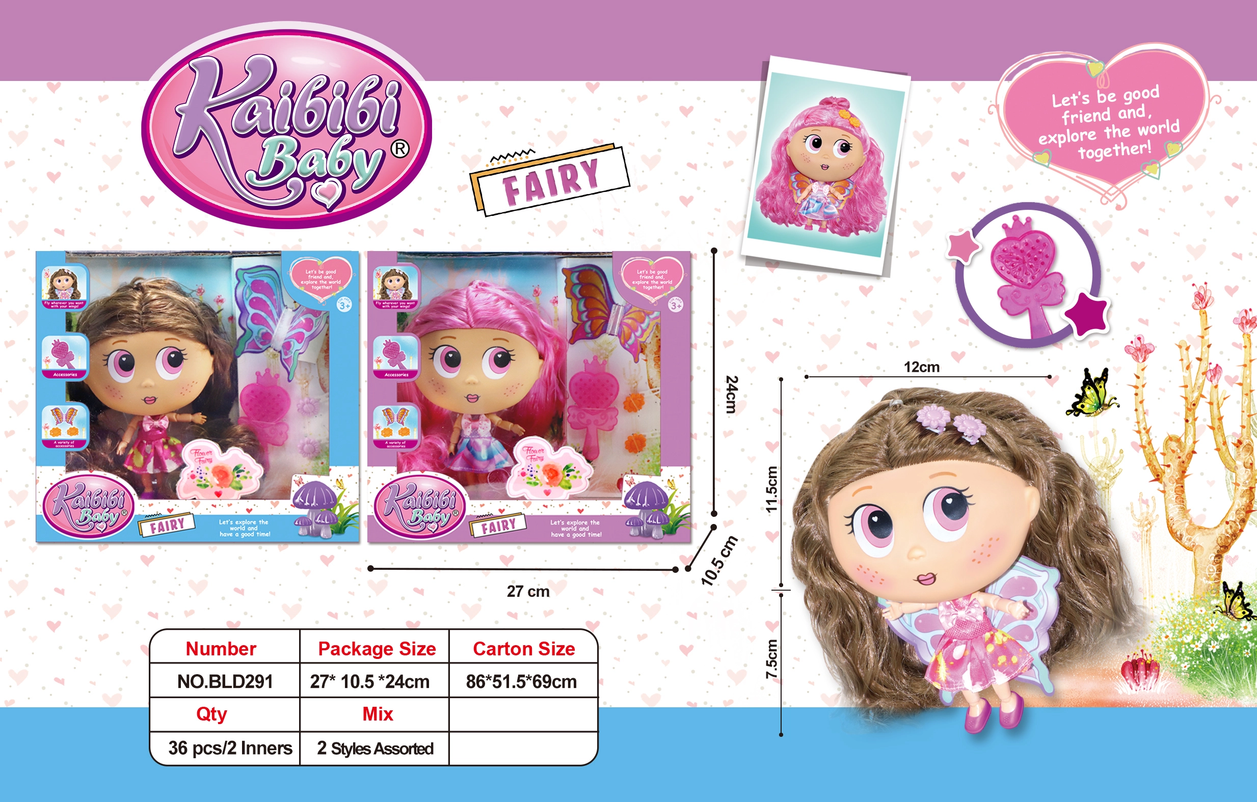 Lėlė Fairy prieinama su dviem plaukų variantais – rudos ir rožinės spalvos, kas suteikia dar daugiau žaidimo galimybių ir leidžia pritaikyti lėlės išvaizdą. Priedai, esantys rinkinyje, leidžia vaikams kurti įvairias šukuosenas ir lavinti jų kūrybiškumą.