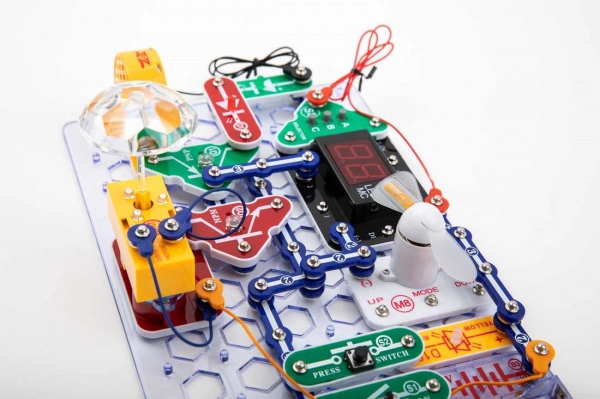 - 1× plokštė, 35× detalės (pvz., lėktuvėlis, mini automobilis, garsiakalbis, judesio jutiklis, variklis su reduktoriumi), 1× vadovas (parsisiųsti internetu)