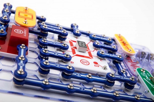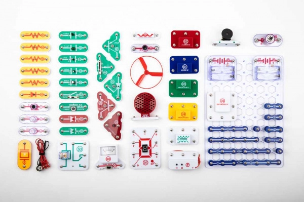 Detalės tvirtinamos prie pagrindinės plokštės naudojant snap kontaktus. Spalvinis išskyrimas ir detalių žymėjimas palengvina orientaciją net vaikams nuo 8 metų.