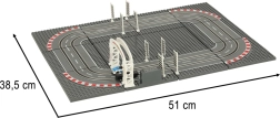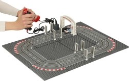 Elektrinė lenktynių trasa – tai jaudinantis žaislas, nukeliantis vaikus į veiksmų kupiną lenktynių ir policinių persekiojimų pasaulį! Su šia trasa vaikai taps įtraukiančių lenktynių dalimi valdydami du automobiliukus – juodą sportinį ir policijos automobilį. Rinkinyje yra aštuonios dalys, iš kurių sudėjus susiformuoja trasa su keturiais posūkiais. Du automobiliukai juda trasa, o vaikai juos valdo naudodami svertinius valdiklius (joistikus), taip tiksliai reguliuodami automobilių greitį.
