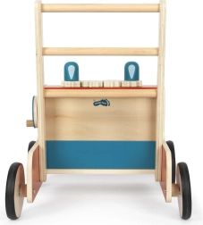 Tvirta medinė konstrukcija ir integruota stabdžių sistema suteikia vaikams užtikrintumo tiek einant, tiek važiuojant greičiau. Keturi platūs ratai užtikrina stabilumą ant įvairių paviršių.