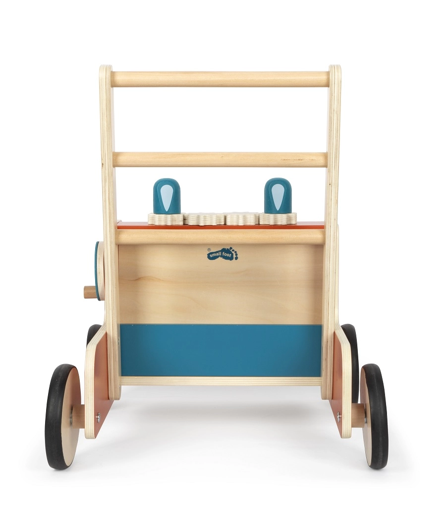 Stilinga medinė vaikštynė gaisrininkai iš SMALL FOOT palaiko pirmuosius žingsnius dėl tvirtos konstrukcijos, stabdžių sistemos ir tylių gumuotų ratų. Interaktyvūs elementai, tokie kaip dantračiai, sukamasis vairas su rankenėle ir judančios šviesos, lavina motoriką ir koordinaciją, o išimamas veltinio krepšys siūlo praktišką lobelių laikymo vietą.
