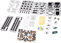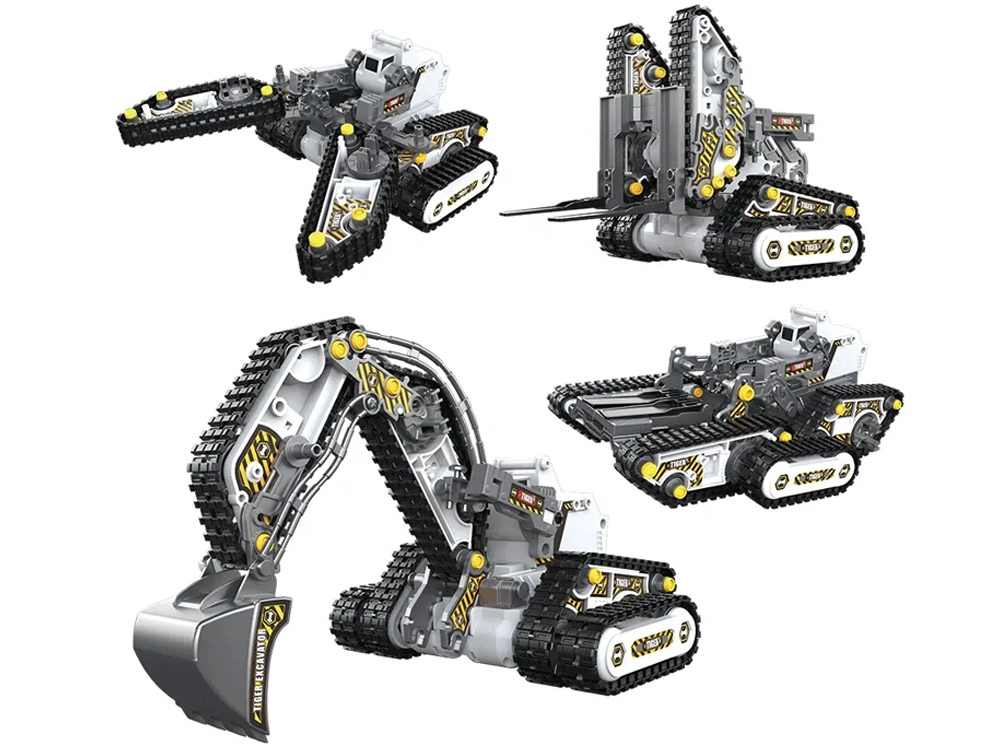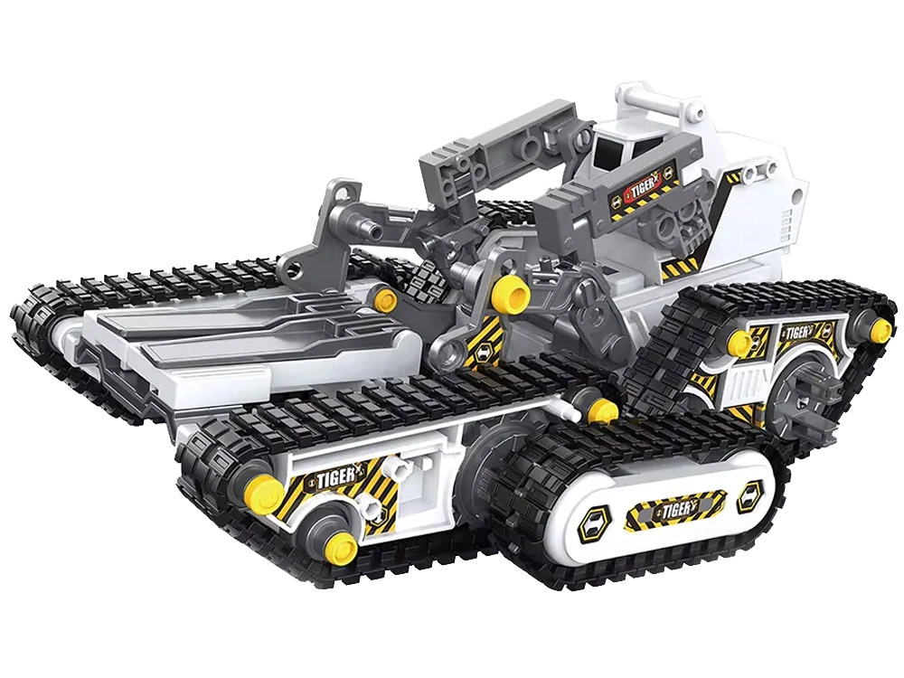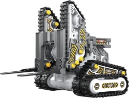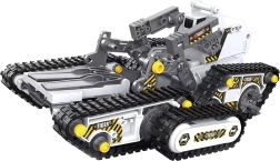 Šis universalus konstruktorius suteiks vaikams ir tėvams valandų valandas pramogų ir mokymosi. Iš vieno rinkinio galima surinkti net 4 skirtingus modelius – tanką, medkirčių mašiną, šakinį krautuvą ir vikšrinę statybinę kasimo sistemą. Įdėjus akumuliatorių ir baterijas į pultą, modeliai atgyja ir juos galima patogiai valdyti.