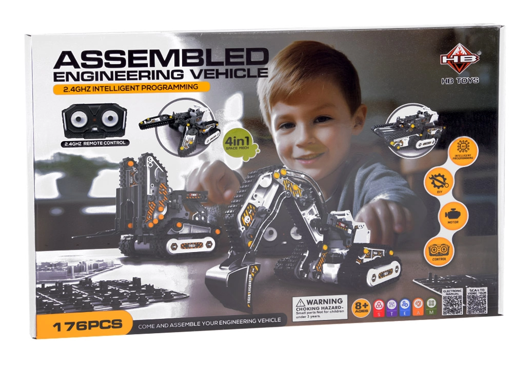 Atraskite kūrybinį 4 viename konstruktorių, su kuriuo vaikai surinks tanką, kombainą–medkirtį, krautuvą su šakėmis ir vikšrinį ekskavatorių – o vėliau galės juos valdyti nuotoliniu būdu! Rinkinyje yra 176 detalės, varikliai, 2,4 GHz pultas ir spalvinti lipdukai. Lengvas dėliojimas pagal iliustruotą instrukciją lavina loginį mąstymą, smulkiąją motoriką ir kantrybę.