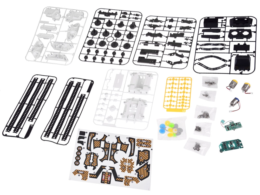 - Konstruktoriaus detalės, varikliai, nuotolinio valdymo pultas, iliustruota instrukcija, lipdukai