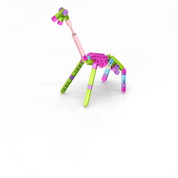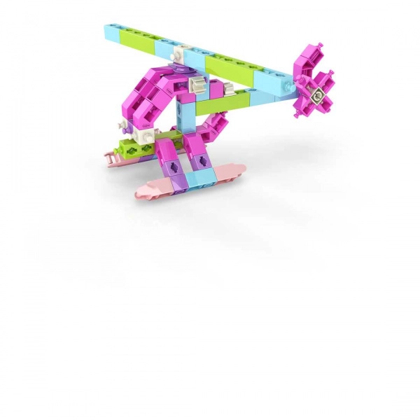 ENGINO Maker Girl 20-in-1 – spalvingas konstravimo rinkinys, lavinantis loginį mąstymą, techninius įgūdžius ir kūrybiškumą. Su 111 detalėmis ir apgalvota jungčių sistema lengvai pastatysite 20 puikių modelių – sraigtasparnį, vežimėlį, laivą, sūpynes, žirafą, sniego motociklą ir daug kitų. Dėl intuityvių spragtelėjimo jungčių modeliai yra stabilūs, o statyba – smagi.