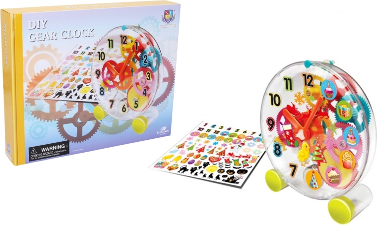 Surinkti laikrodžiai veikia mechaninio mechanizmo pagrindu – tai ir edukaciška, ir smagu. Pakuotėje taip pat yra dekoratyvinių lipdukų, kurių dėka dizainą pritaikysite pagal savo skonį.