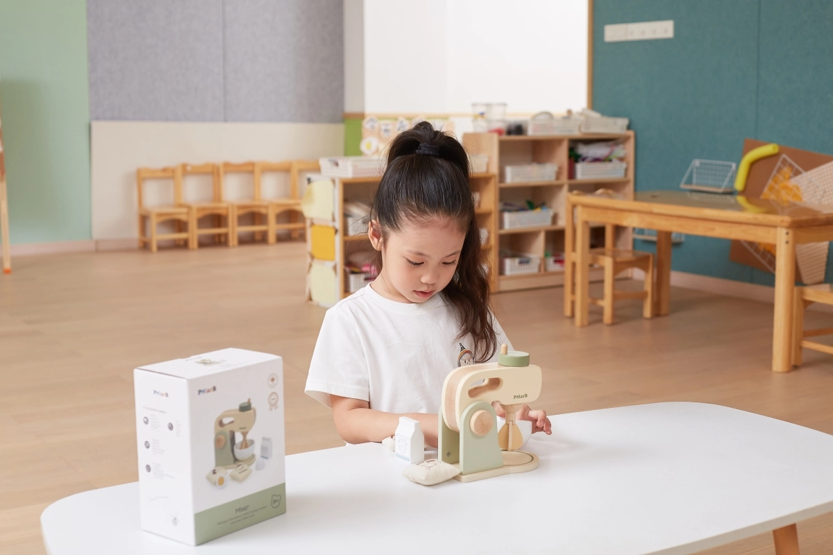 PolarB medinis virtuvinis maišytuvas yra ne tik gražus vaikų virtuvėlės akcentas, bet ir žaislas, padedantis lavinti vaikų įgūdžius ir kūrybiškumą. Su atverčiama svirtimi patogiam dubens įdėjimui ir išėmimui, pasukama rankenėle ir besisukančiu maišytuvu jis atkartoja tikrus virtuvės prietaisus.