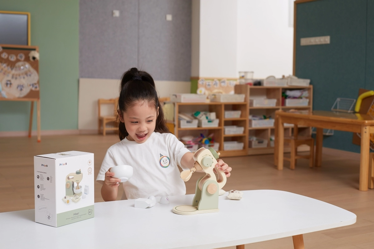 PolarB medinis virtuvinis maišytuvas yra idealus mažiesiems virėjams, norintiems išbandyti savo kulinarinius įgūdžius. Šis medinis maišytuvas skirtas vaikams nuo 3 metų ir skatina jų kūrybiškumą bei motorinius įgūdžius.