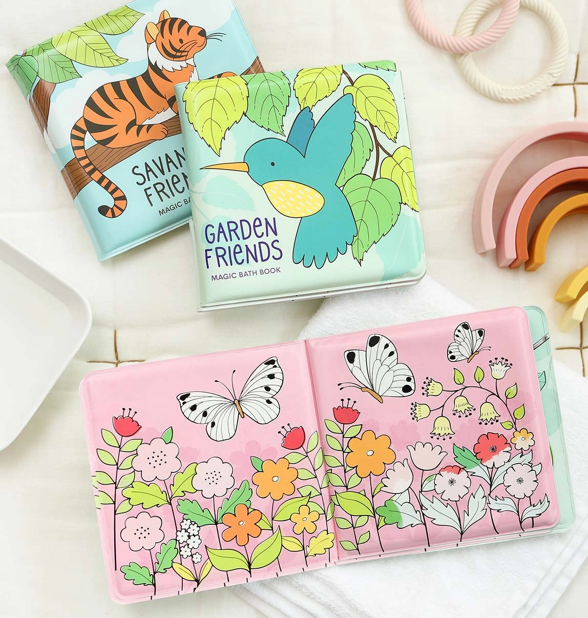 Ši magiška knygelė maudynėms pavers kiekvieną maudymąsi kūrybišku žaidimu. Kai tik puslapiai sudrėksta, iliustracijos atgyja sodriomis spalvomis, o vaikai atranda gyvūnėlius, kuriuos gali sutikti sode ar pievoje. Ne vonioje pakanka paimti šlapią teptuką ir pradėti piešti – išdžiūvus spalvos išnyksta ir pramoga gali prasidėti iš naujo.