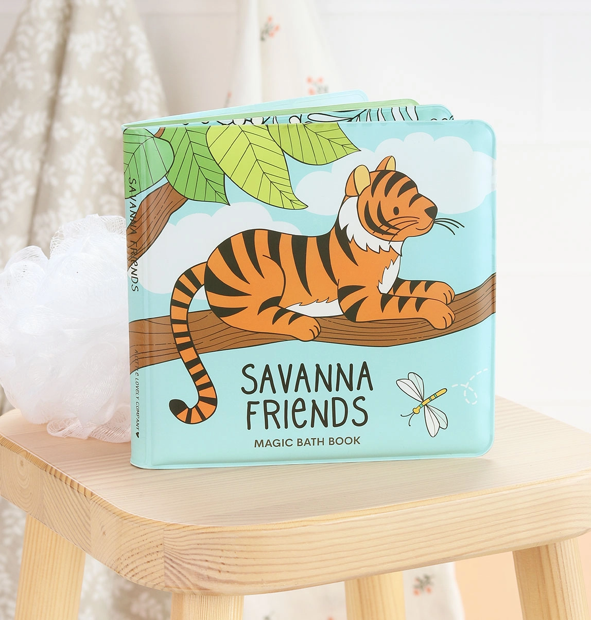 Atraskite linksmą stebuklingą vonios knygelę vaikams nuo 12 mėn. Minkšti, vandeniui atsparūs puslapiai su mielais savanos gyvūnais atgyja sušlapus – spalvos akimirksniu išryškėja vos tik susilietus su vandeniu. Galima spalvinti ir šlapiu teptuku ne vonioje, o išdžiūvus spalvos vėl išnyksta.