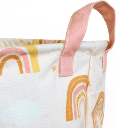 Stilingas laikymo krepšys su linksmu vaivorykštės motyvu į vaikų kambarį įneš tvarką ir žaismingą dizainą. Jis lengvas, stabilus ir dėl vidinės PE dangos tinka net skalbiniams rinkti.