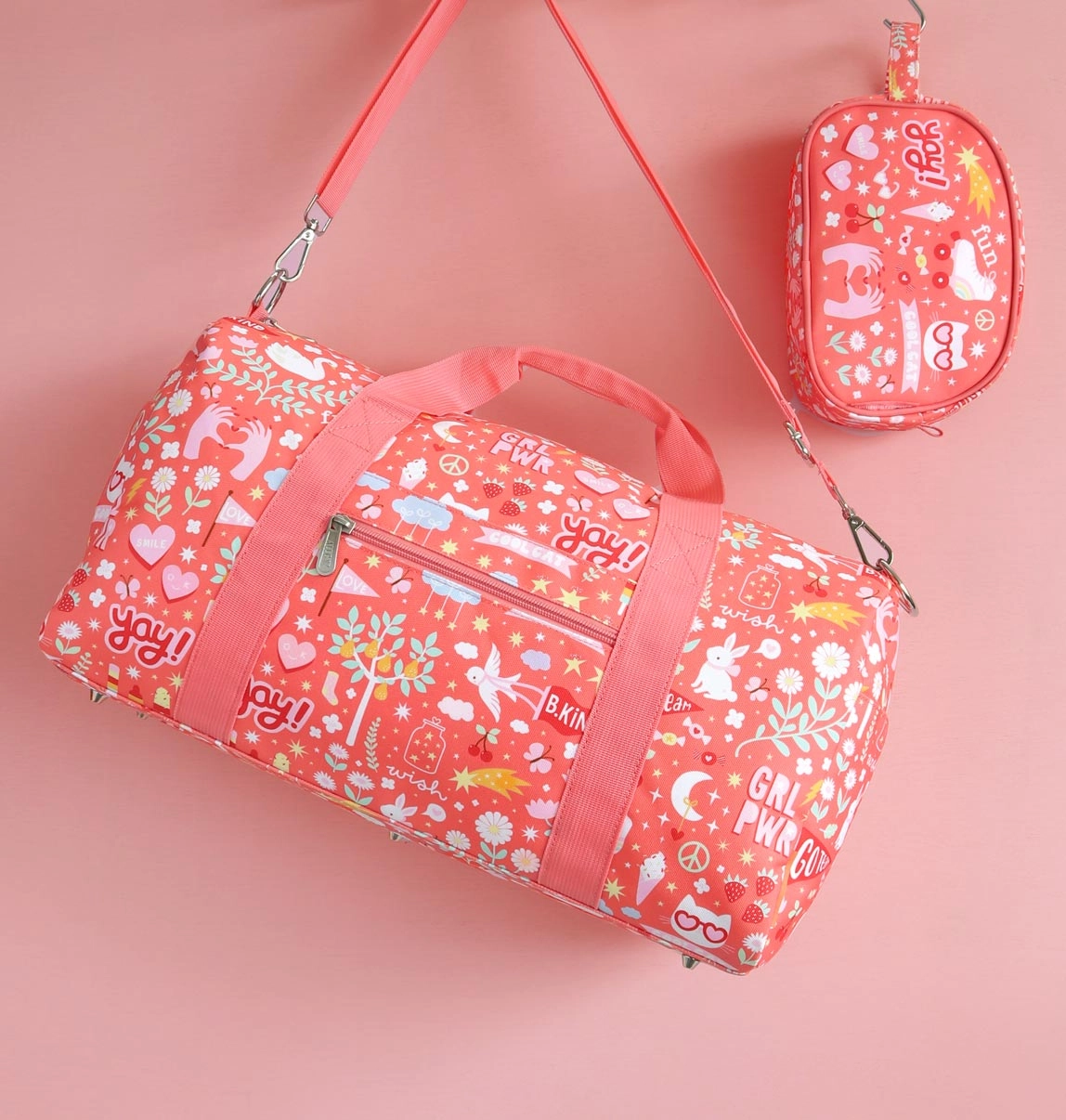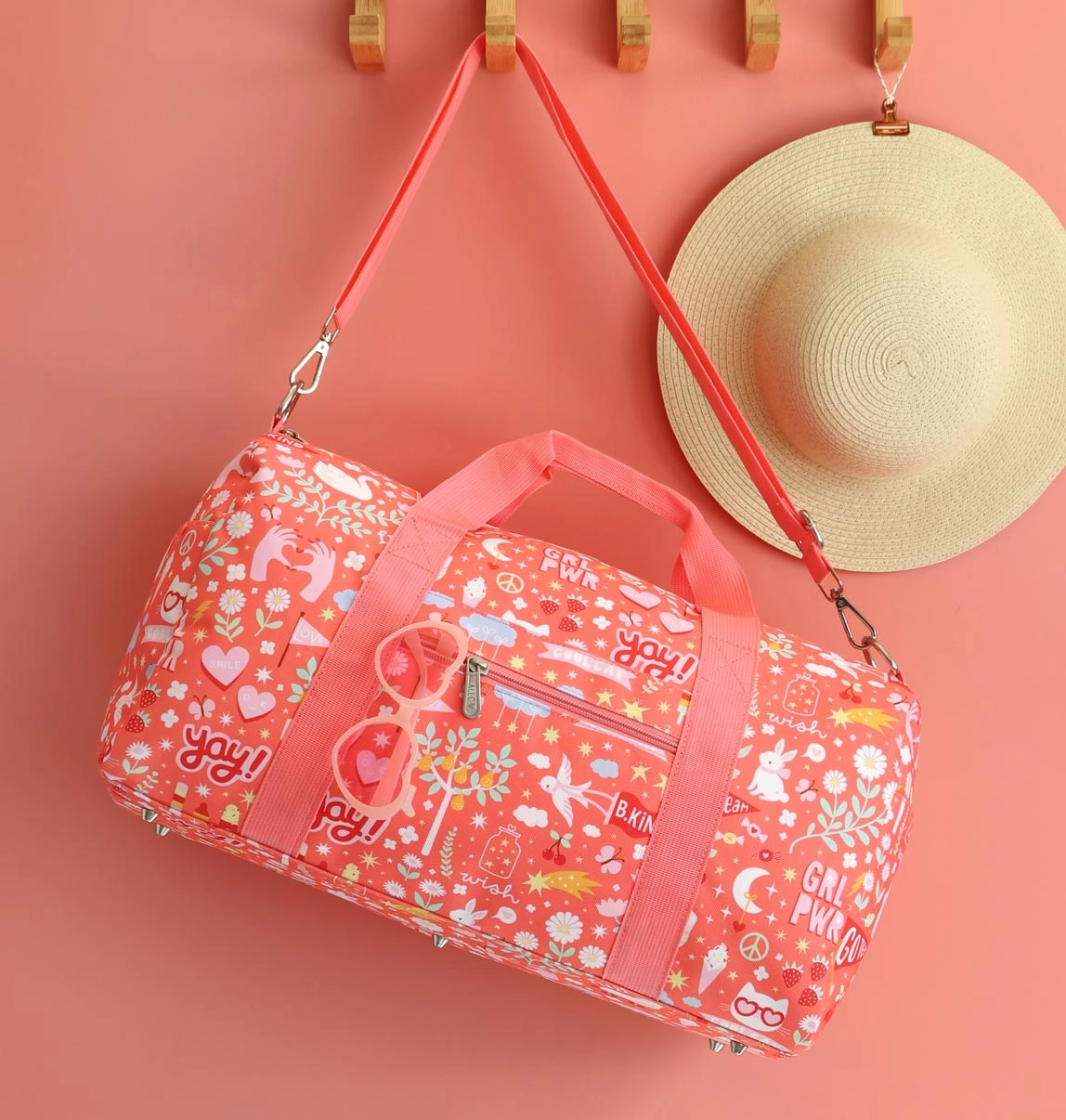 Praktiškas ir stilingas vaikiškas kelioninis krepšys iš A Little Lovely Company idealiai tinka sporto būreliams, savaitgalio išvykoms ir kaip rankinis bagažas lėktuve. Jis turi erdvią pagrindinę dalį, keletą kišenių patogiam daiktų sudėjimui ir yra pagamintas iš tvirto, lengvo poliesterio su linksmu spalvotu raštu. Dėl nuimamo peties diržo ir tvirtų rankenų jį patogu nešti tiek vaikams, tiek tėvams.