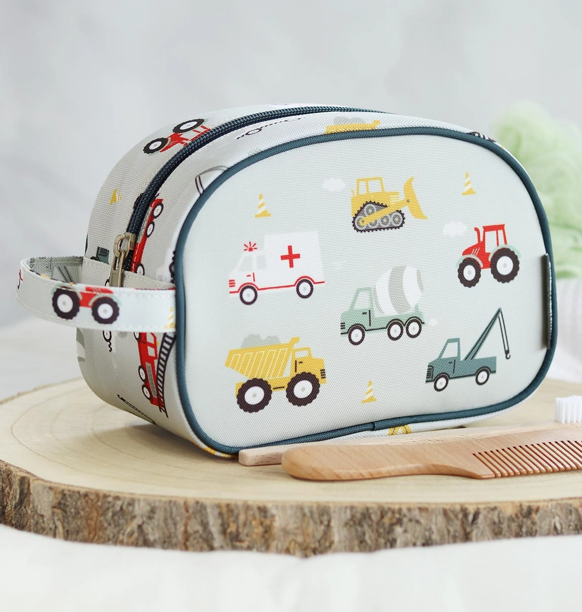 Ši stilinga A Little Lovely Company tualetinė kosmetinė su žaisminga automobilių, ekskavatorių ir kitų mašinų spauda padeda tvarkingai laikyti vaikų higienos priemones. Pagaminta iš patvaraus tekstilinio audinio, turi lengvai slystantį užtrauktuką ir šoninę kilpelę patogiam nešiojimui bei pakabinimui vonioje.