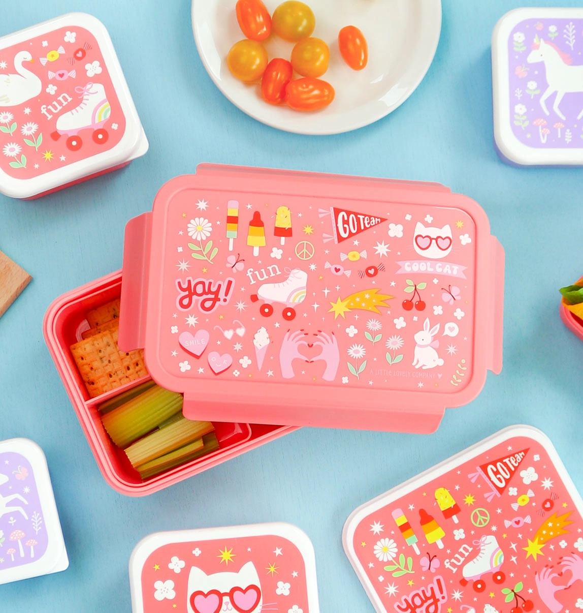 Vaikiška priešpiečių dėžutė A Little Lovely Company puikiai tinka kasdieniam naudojimui. Patogus užsifiksuojantis dangtelis saugo turinį šviežią ir saugiai uždarytą, o išimamas padėklas su dviem skyreliais padeda atskirti maisto dalis. Dėl 1,2 litro talpos telpa viskas – nuo sumuštinių iki vaisių ir užkandžių.