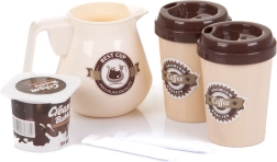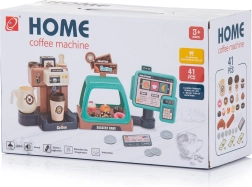 Rinkinyje yra 41 skirtingas priedas, įskaitant kavos aparatą, puodelius, kavos spaudiklį, monetas, banknotus, kasą ir desertų stovą.