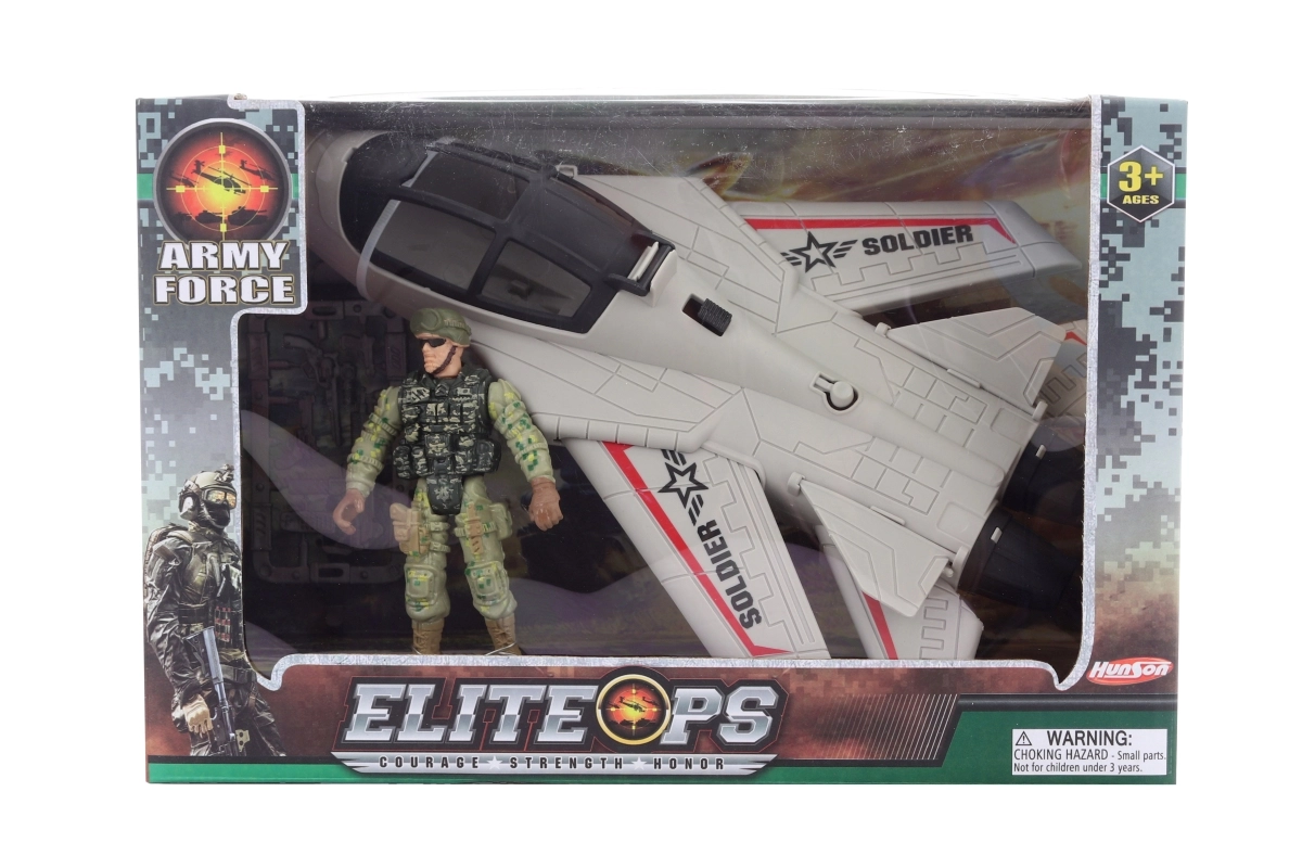 Karinis rinkinys su realistišku naikintuvu ir kareiviu mažiesiems nuotykių mėgėjams. Ideali žaislas, kuri lavina vaizduotę ir sumanumą.