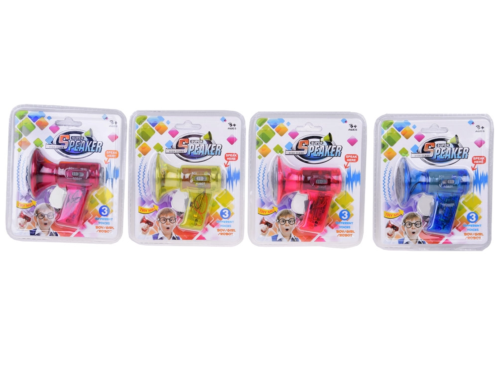 Balso keitiklis siūlomas keturių ryškių spalvų: mėlynos, geltonos, rožinės ir raudonos. Kiekvienas gali išsirinkti savo mėgstamą spalvą!