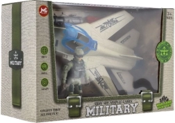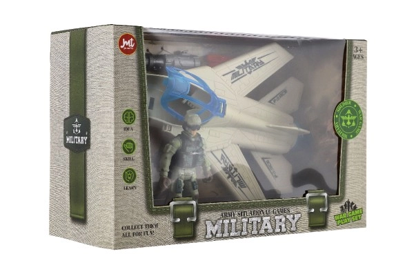 Dėžutėje 27 × 18 × 12 cm yra naikintuvas, kareivis ir priedai – puiki dovana mažiesiems karinių istorijų gerbėjams.
