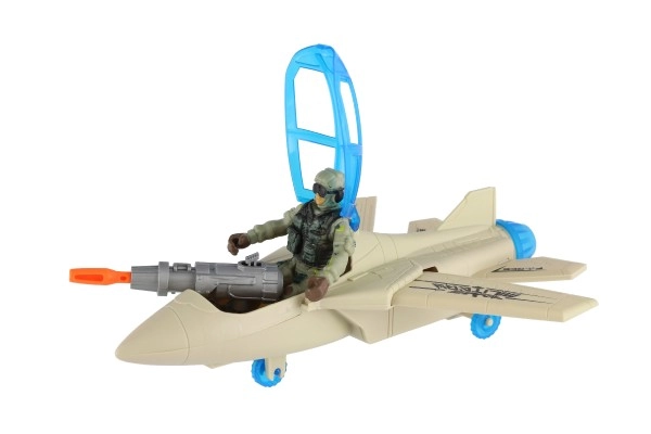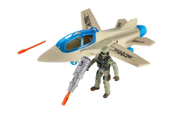 - Pilnas rinkinys: naikintuvas, veiksmo kareivio figūrėlė ir priedai