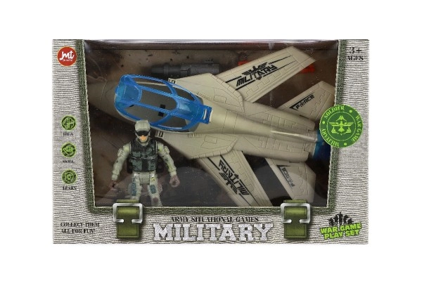 Leiskitės į veiksmo pasaulį su plastikiniu kariniu rinkiniu mažiesiems nuotykių ieškotojams! Rinkinyje yra detalus naikintuvas, visiškai judri kareivio figūrėlė ir priedai tikroviškoms misijoms. Puikiai lavina vaizduotę ir kūrybišką žaidimą. Pakuotės matmenys 27 × 18 × 12 cm, tinka nuo 3 metų.