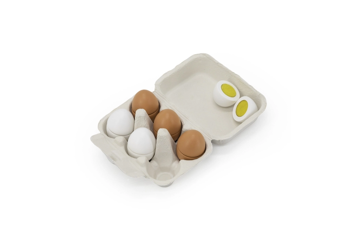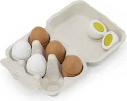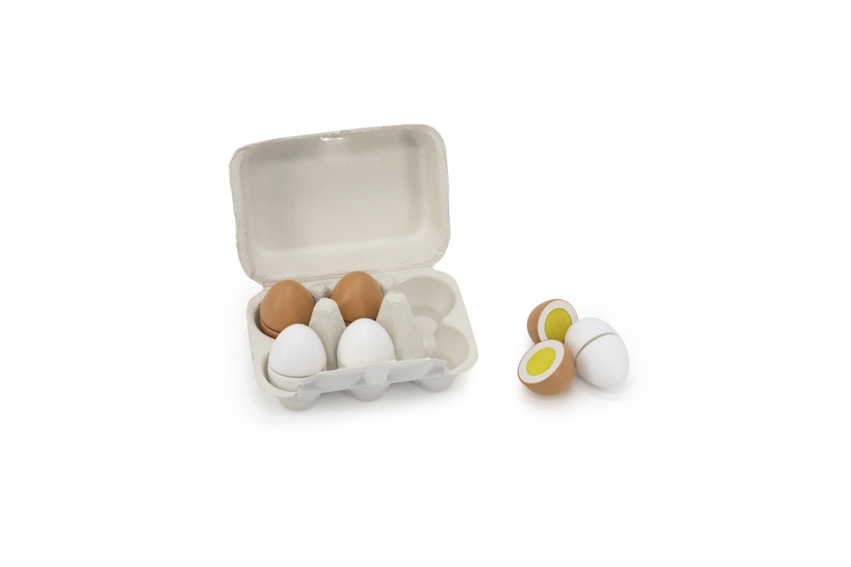 Šis nuostabus medinių kiaušinių rinkinys leidžia vaikams mėgdžioti suaugusiuosius ir ugdyti susidomėjimą kulinarija. Jie idealiai tinka žaidimų virtuvėlėms ar vaikų parduotuvėlėms. Kiekvienas kiaušinis sujungtas velkro ir jį galima perpus perpjauti, suteikiant vaikams galimybę vaidinti maisto gaminimą. Linksmumas ir išradingumas garantuoti!