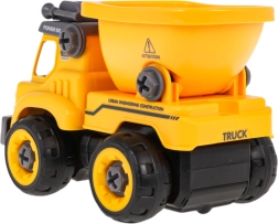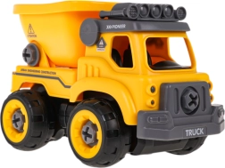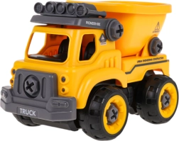 Ši statybinė mašina imituoja realistiškus garso efektus, tokius kaip signalas, variklio ir važiavimo garsai, kas suteikia žaidimui autentiškumo. Be to, turi judančias dalis, pavyzdžiui, savivarčio kėbulą ir automobilio stogą. Nuotolinio valdymo pultui reikalingos 2x AA baterijos, o automobiliukas veikia su 3x AG13 baterijomis.
